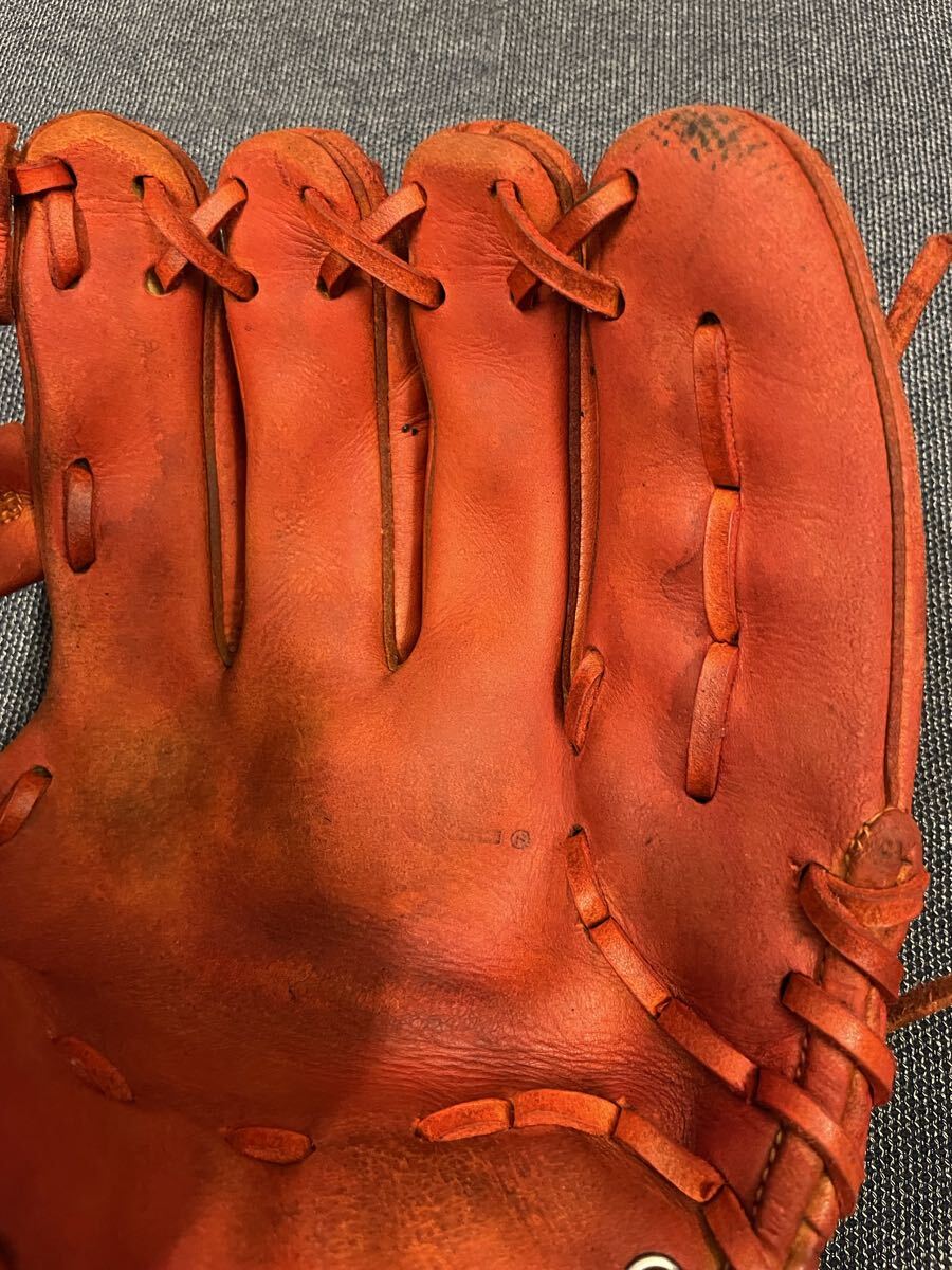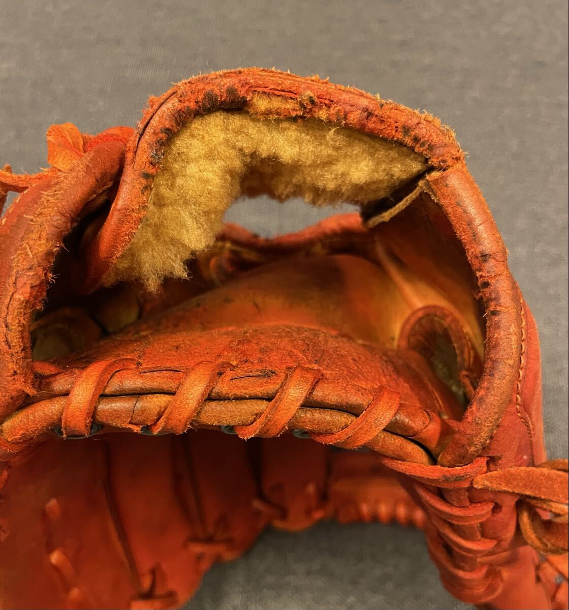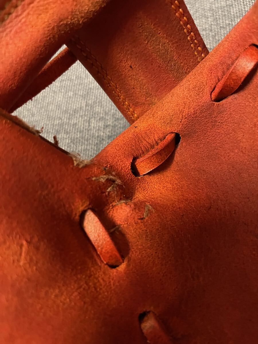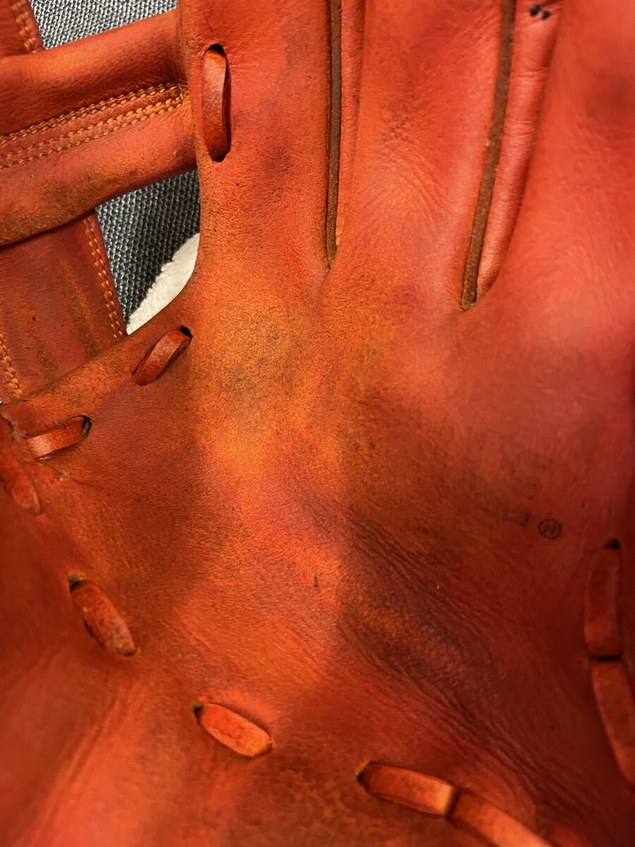 現代のグローブに比べ革が厚く、芯材も厚く、堅牢な作りです。