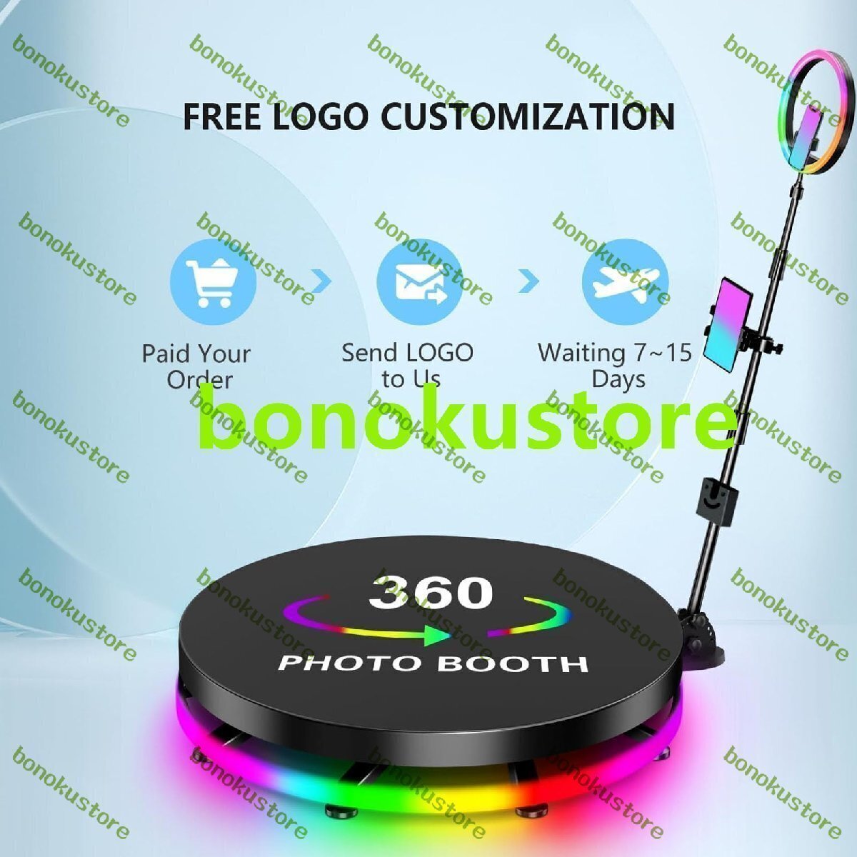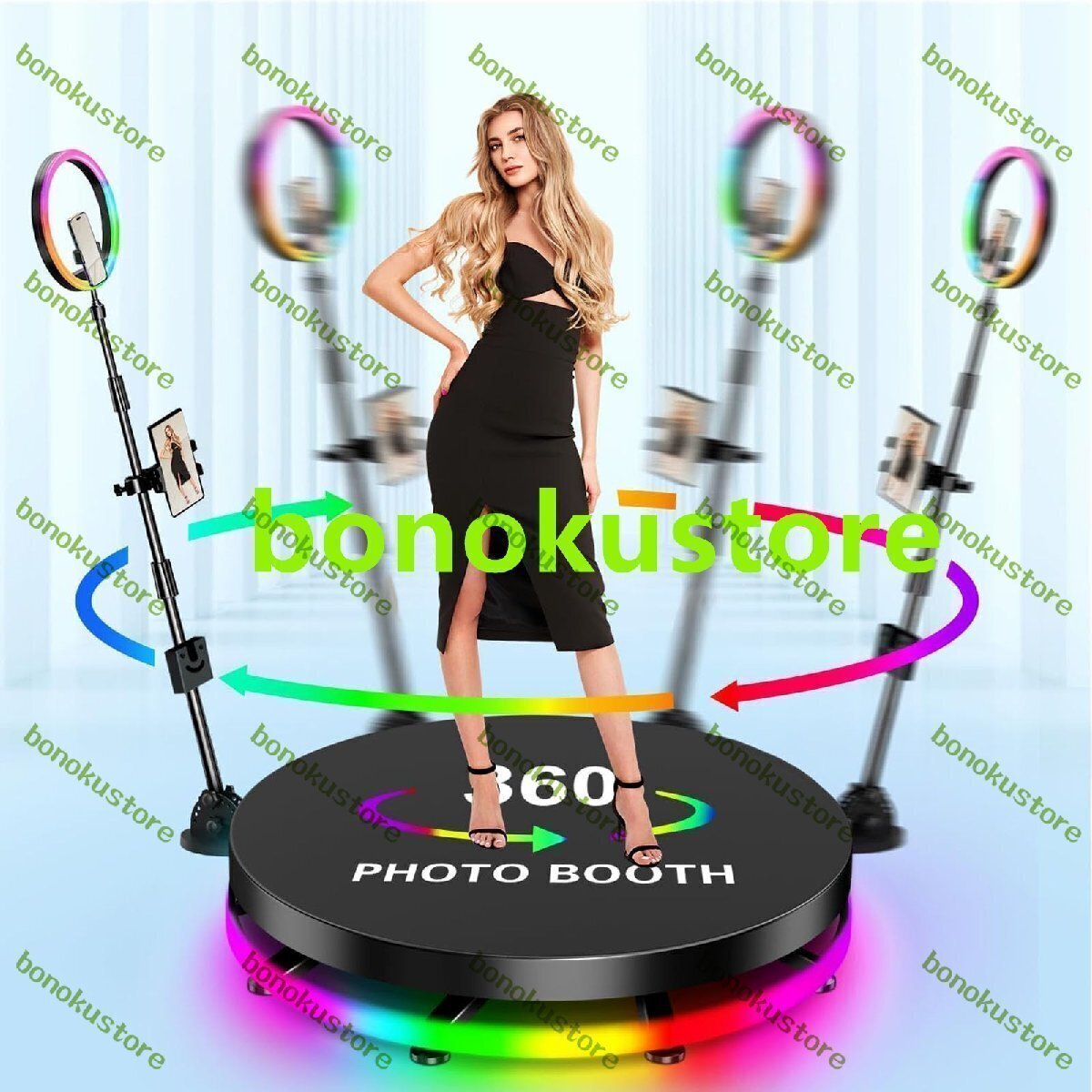 【360プリクラ】:家族や友達と一緒にプリクラで写真や動画を撮ると、有名なスター気分を満喫できます 【マルチデバイス対応】360度回転するプリクラには、カニクランプ、360°ボールヘッド、電話ホルダー、リングライトが付属しています。 1/4 "ネジはほとんどのマウントに適合し、電話、GoPro、カメラを簡単にサポートできます 【機能】:ON / OFF、リバース、加速、減速、緊急制御センター,マルチカラーLED雰囲気ライトストリング、自分撮り伸縮ロッド40’-71’’調整可能 【ワイドユース】:お祭りのお祝い、誕生日会、結婚披露宴、展示会、バー、生放送、ショーなど