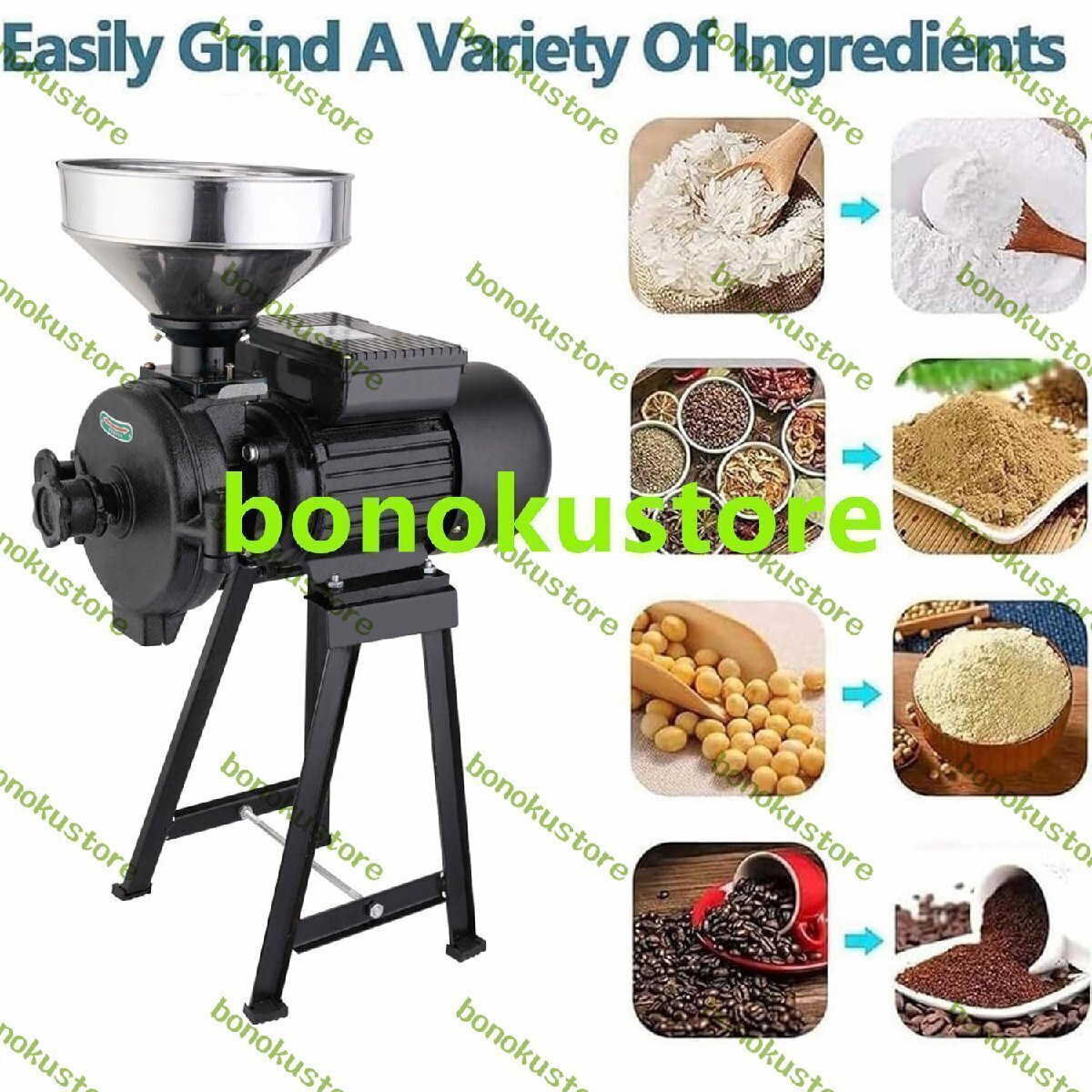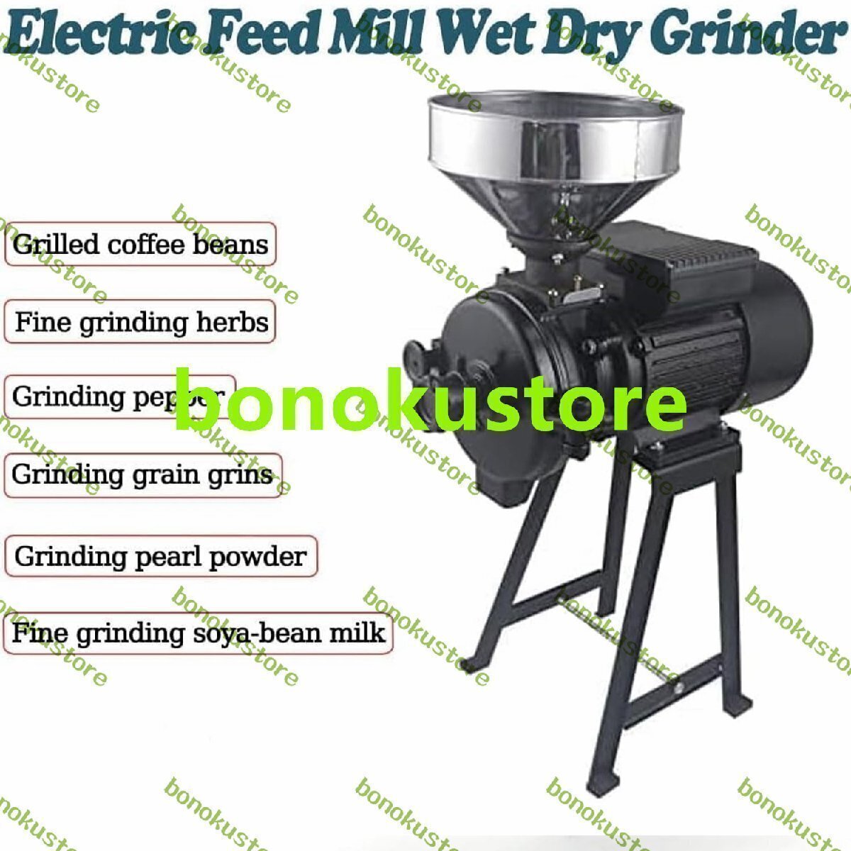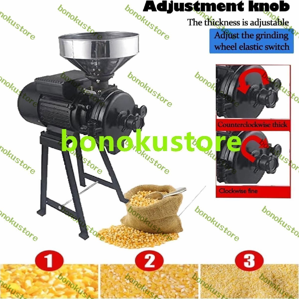 商品説明 商品の説明 名前: 電気グラインダー 電力: 1500W 定格速度: 1400R/分 ドリルビット直径: 150mm マシンサイズ: 58x43x27 cm トウモロコシの粉砕: ?60 (Kg/H) 精米能力: ?75 (Kg/H) 小麦粉砕: ?75 (Kg/H) ジャポニカ米粉砕: ?50 (Kg/H) パック: 1x 電動穀物グライン