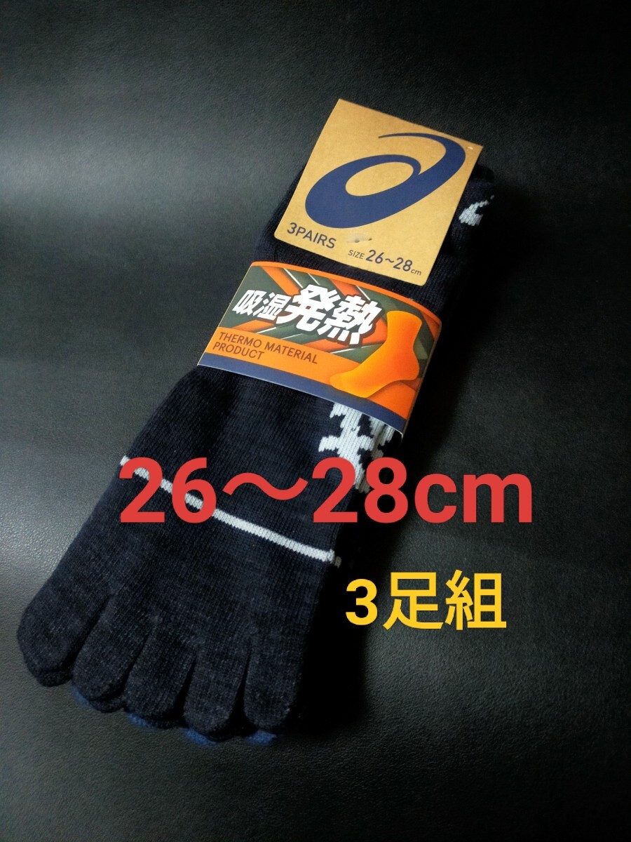 ◆★送料無料!26〜28cm!!asics アシックス【吸湿発熱】5本指ソックス 3足組 男性用 靴下 紳士用 メンズ 5本指靴下 5本指