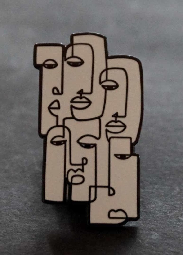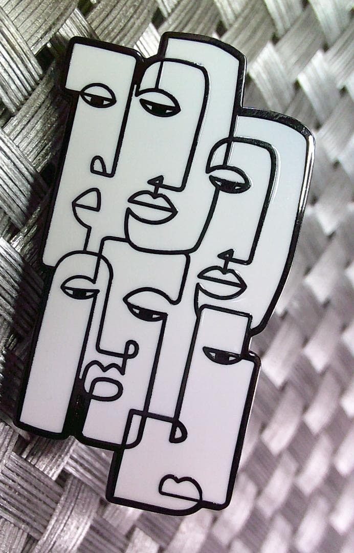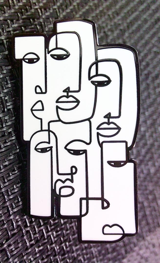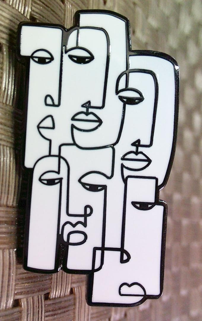 《白多面顔FR芸術》白黒多面顔FR芸術■音楽ミュージック ■激渋ピカソスタイル画像■PICASSO クール ピンバッジ■アーティスト アート美術