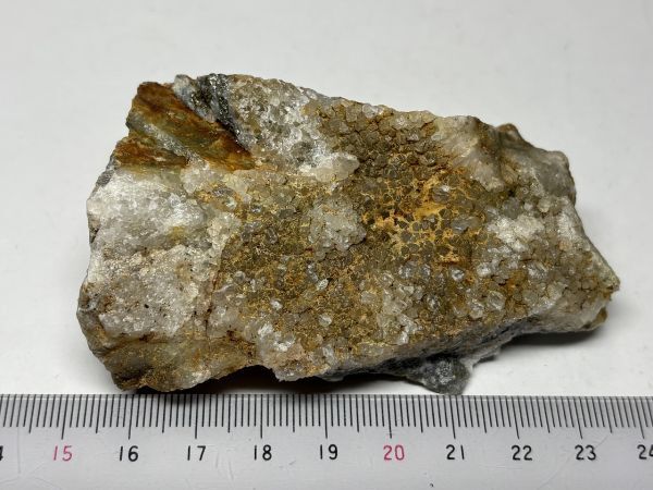 十二峠鉱山産の水晶です。石英脈の表面に小さな水晶が多数生成しております。