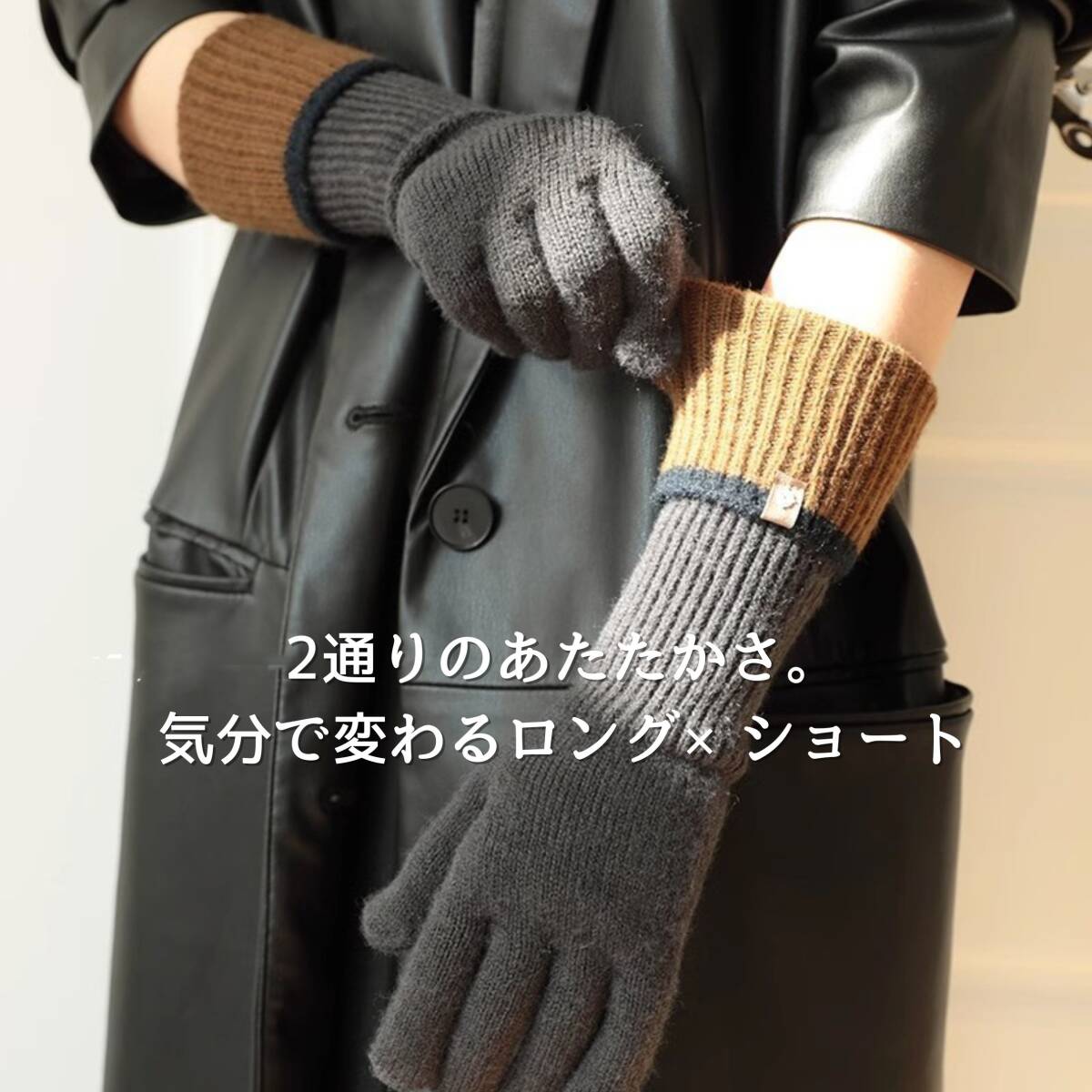 手首から腕までしっかり包み込み、ふんわりとしたぬくもりが広がるロングタイプの手袋。