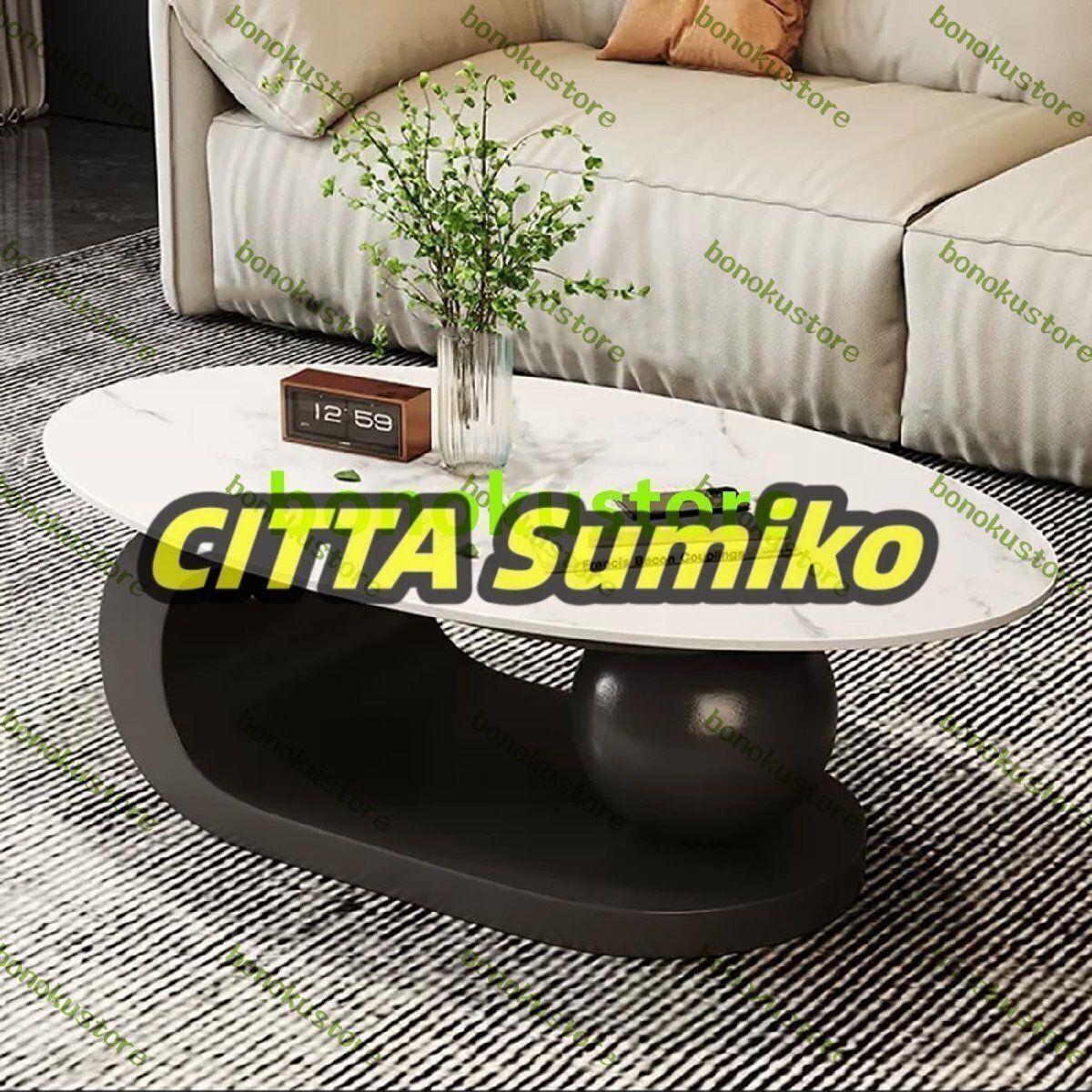 楕円形のコーヒーテーブル ローテーブル 一人暮らし モダンなリビングルームセンターテーブル 金属製の台座ベース、リビングルームバルコニーラウンジ用リビングテーブル(White 100x55x40cm)