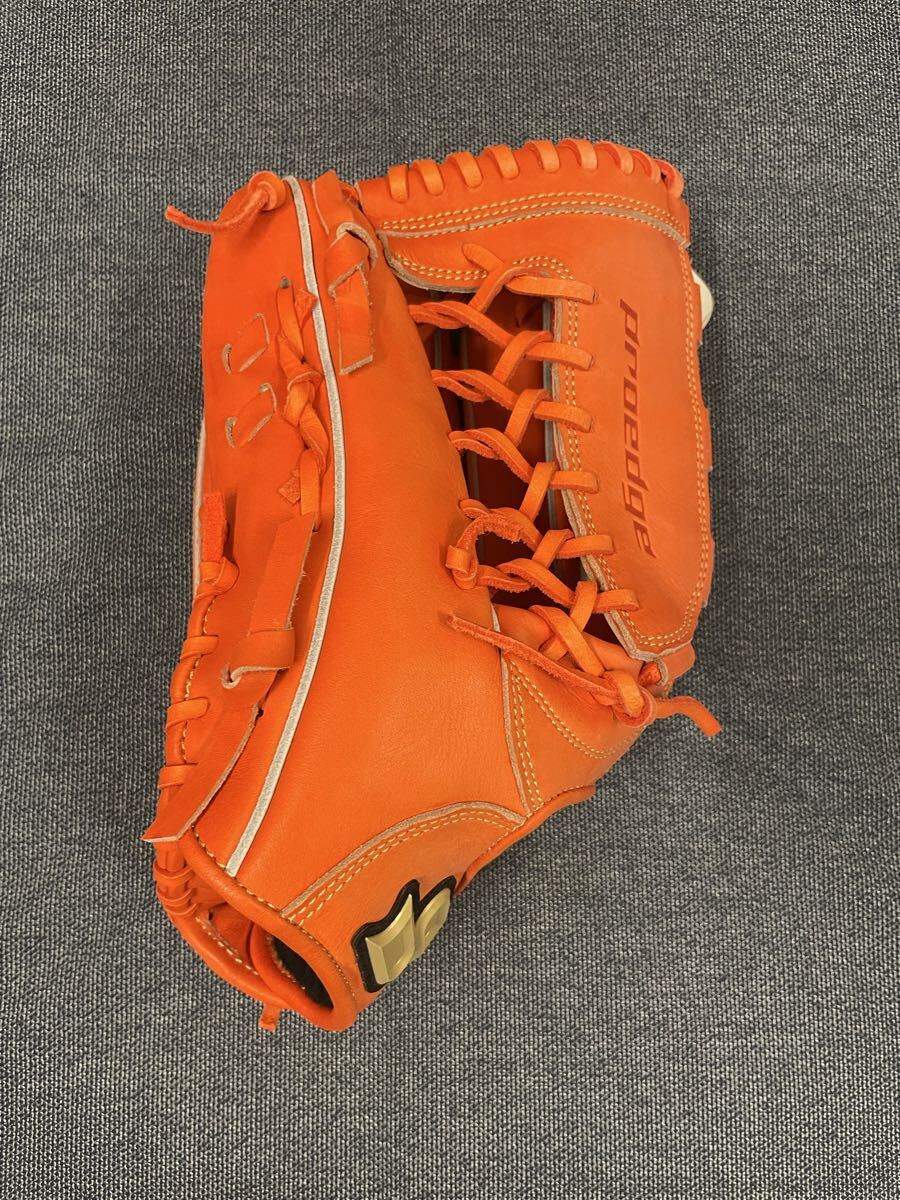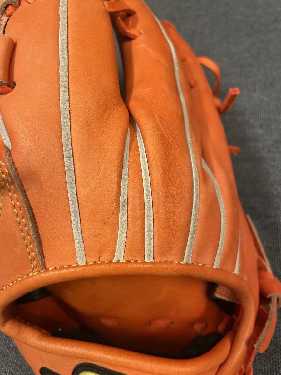 ポケットはウェブ下から人差し指寄りに深い設計。親指と小指を合わせて使用できるような型です。