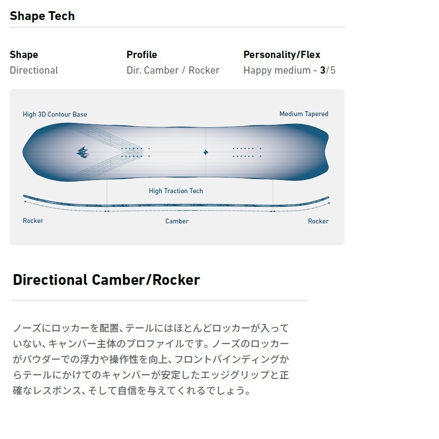 ・形状: DIRECTIONAL CAMBER/ROCKER