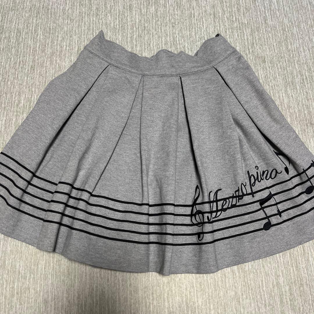 ★美品★メゾピアノジュニア★音符と五線譜刺繍★フレア★グレー色★プリーツスカート★サイズL160★発表会