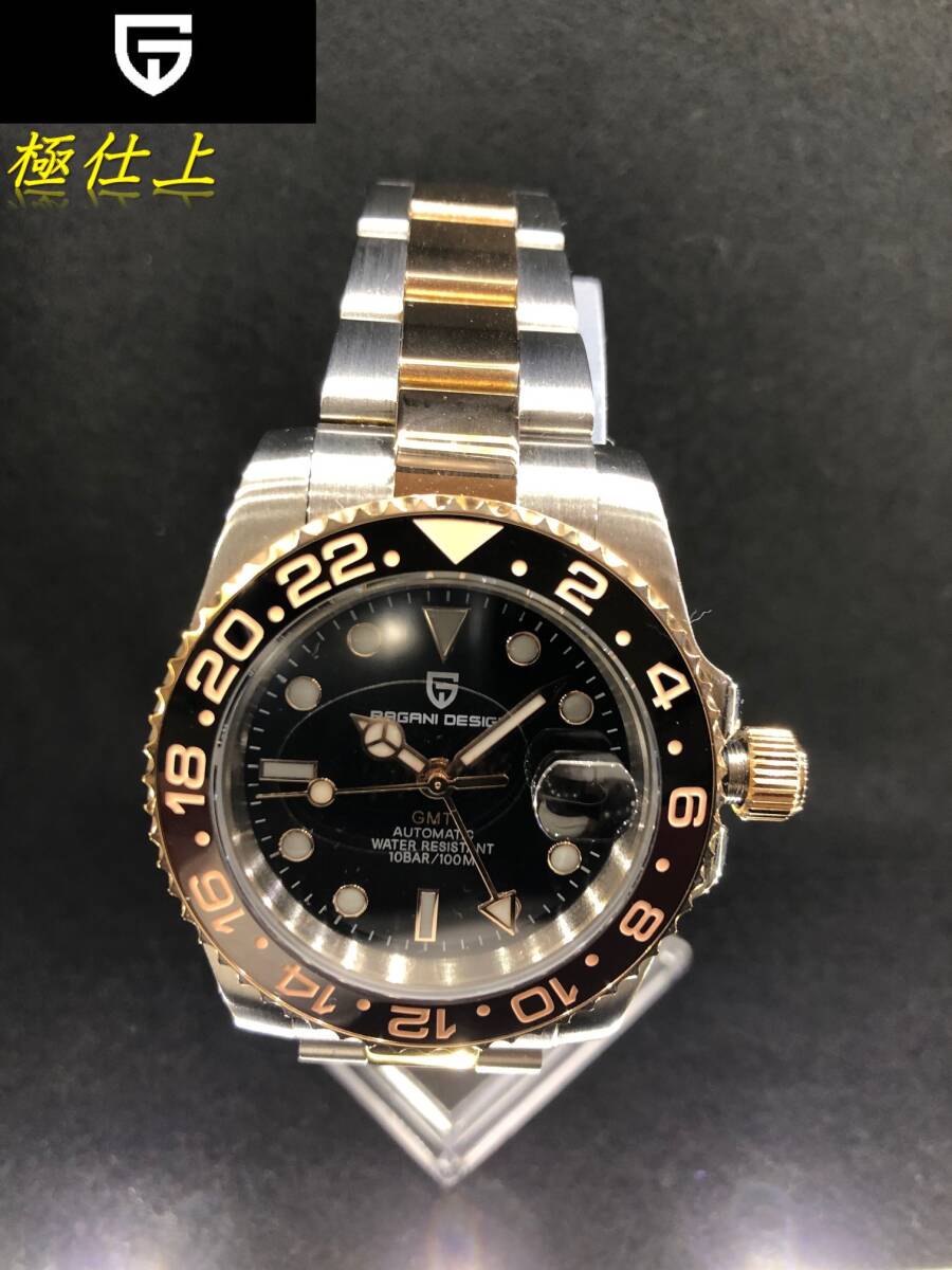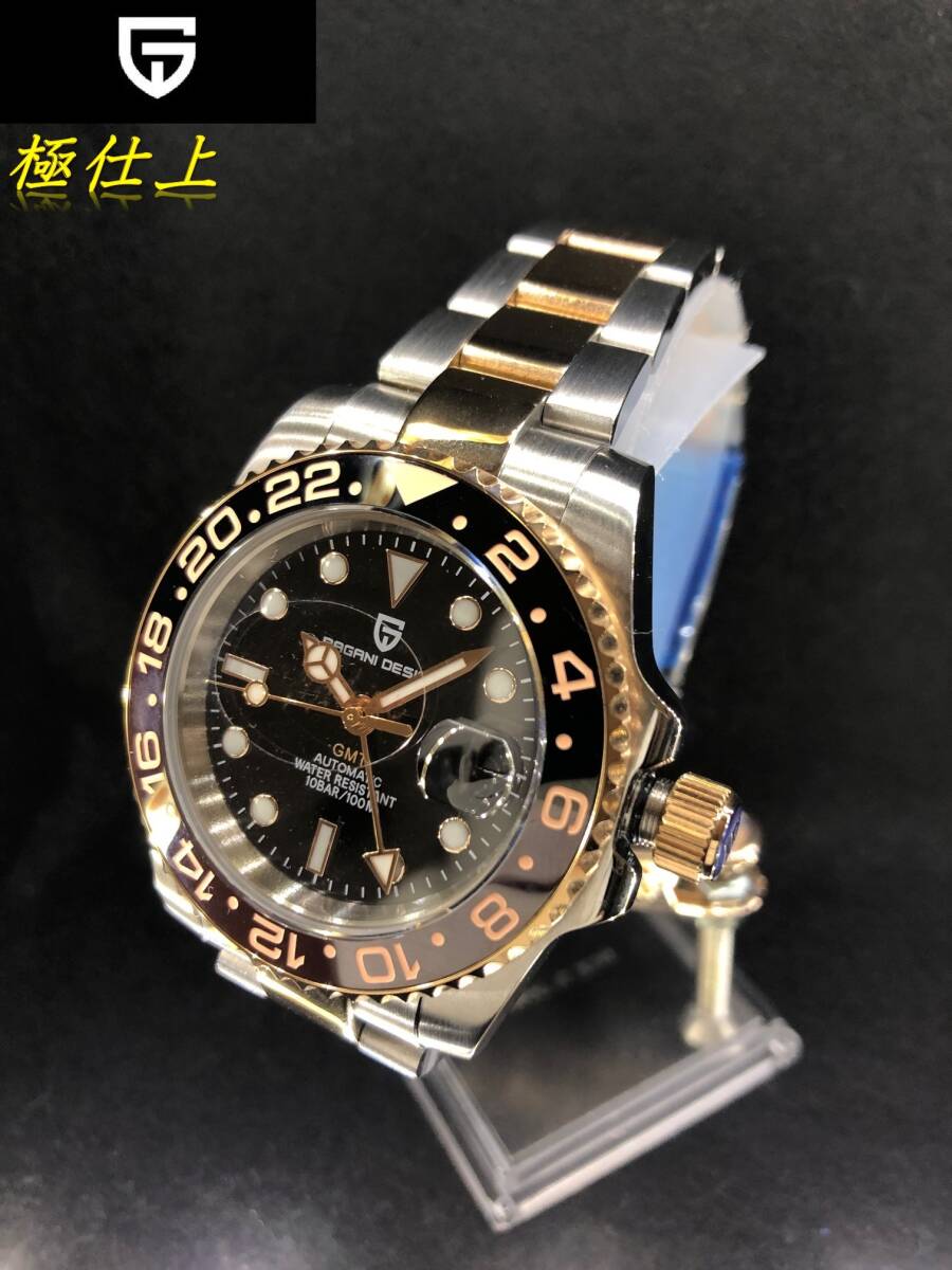 ■極仕上/調整済/10日保証付/新品に極めて近い1回だけ使用USED/中古品(GMTマスターⅡオマージュ)(機械式時計)コンビモデル黒茶ベゼル
