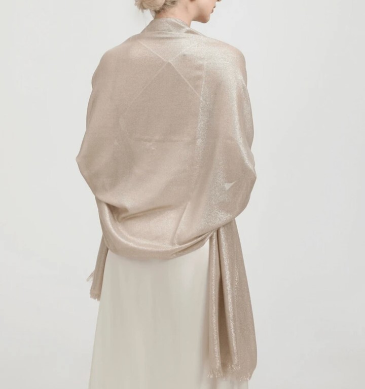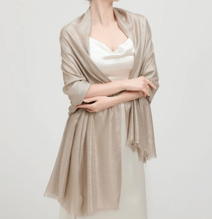 ほんのりシルバーラメ糸を織り込んた上品なベージュゴールドカラーでどんなドレスにも合い、年齢問わずお使い頂けます!