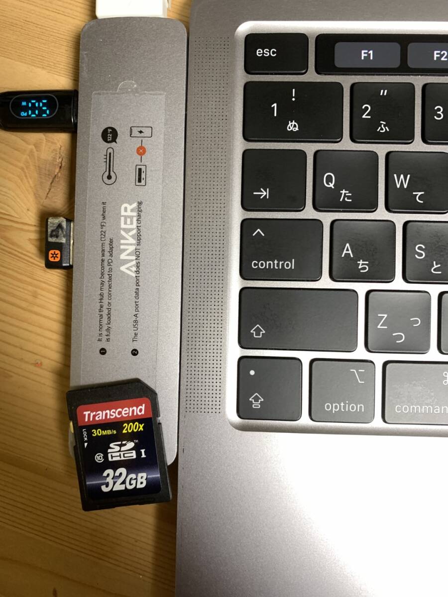 USB-C端子×2、、、、SSDメモリにて読み込みの確認、電源マークがついている端子のみ