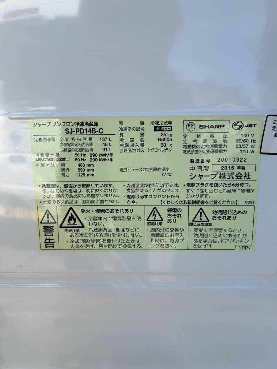 シャープ SHARP SJ-PD14B 冷蔵庫 2ドア 2ドア冷蔵庫 冷凍冷蔵庫 137L