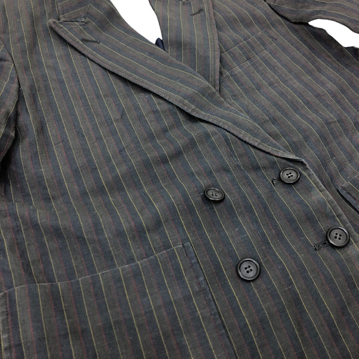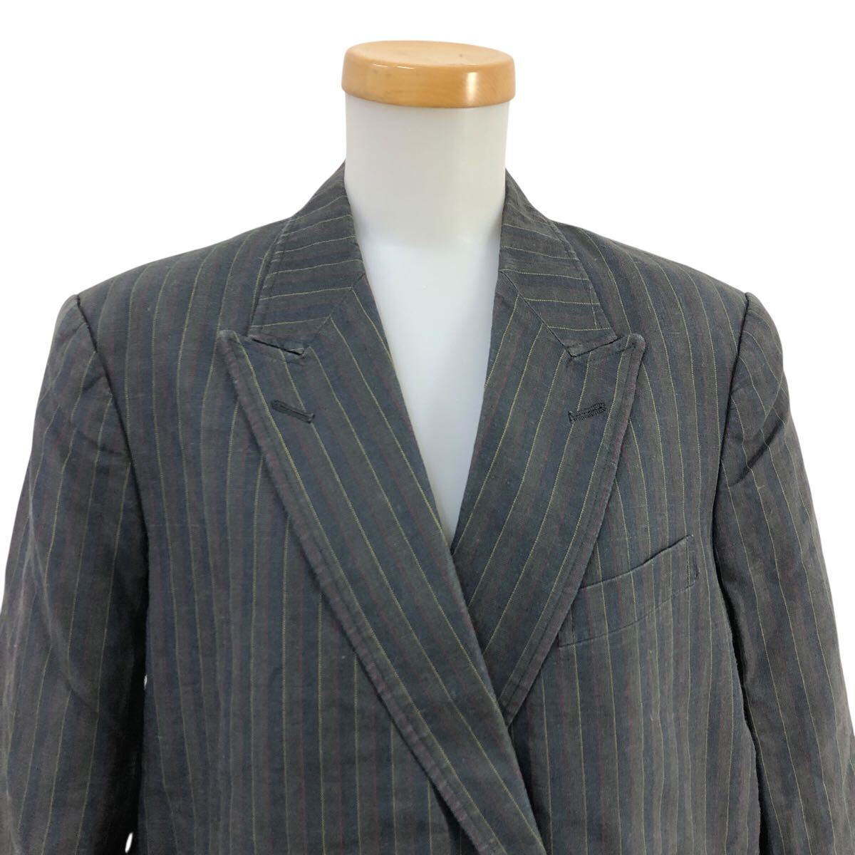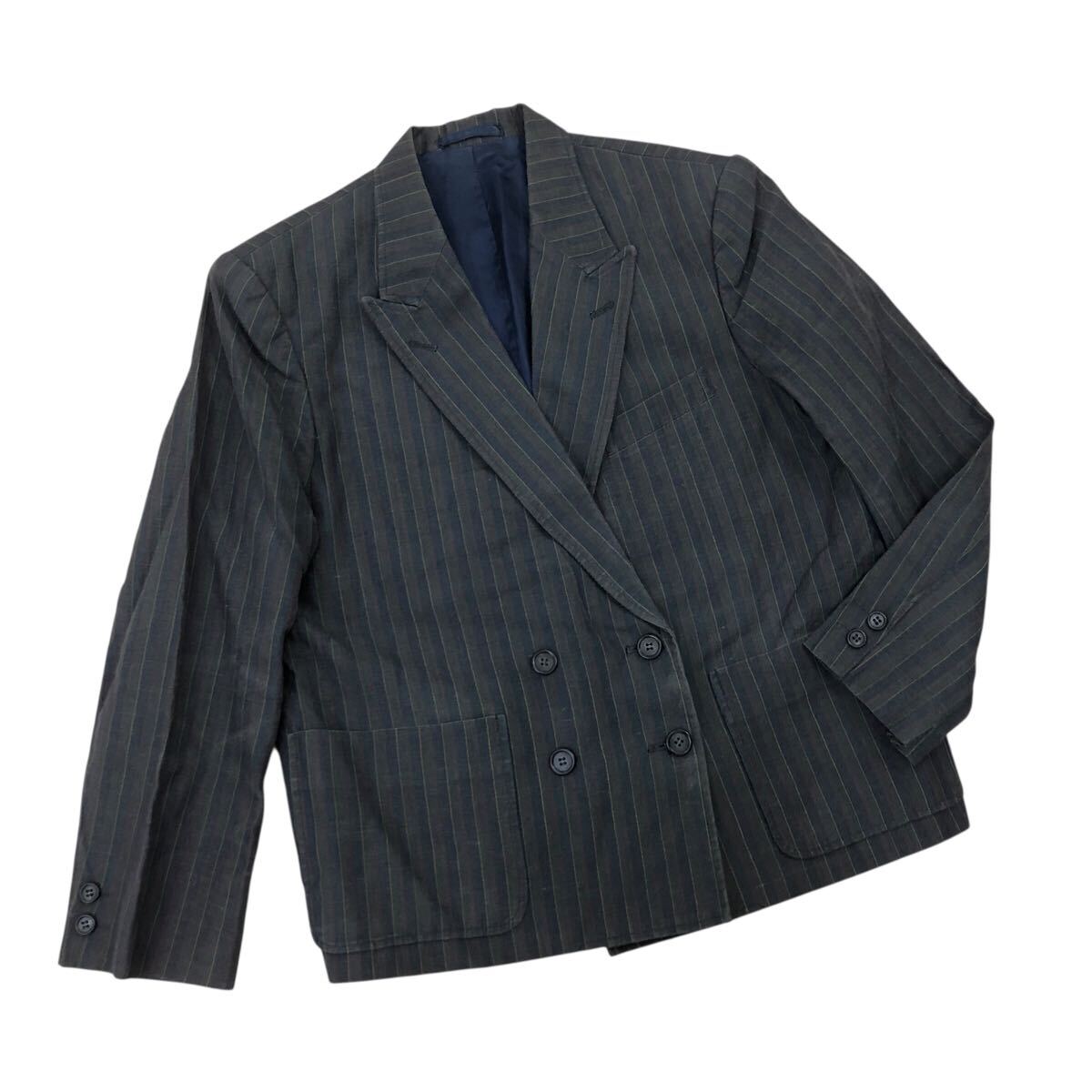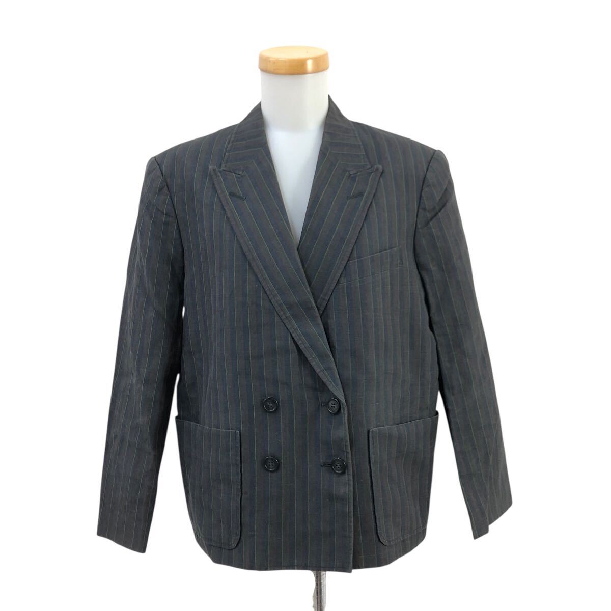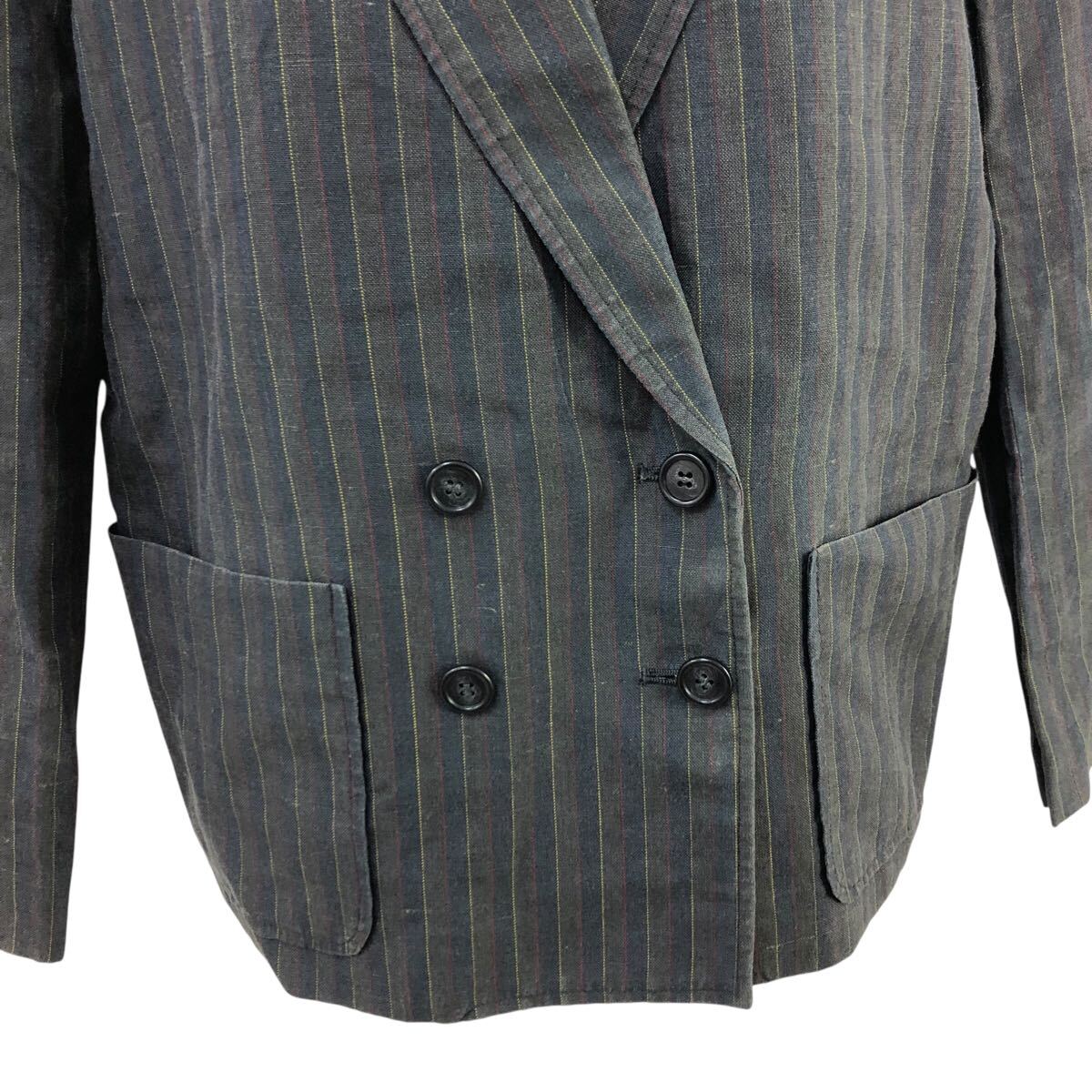 11Nm333-72 PINK HOUSE ピンクハウス リネン 麻 100% ストライプ 柄 ダブル テーラード ジャケット 上着 羽織り トップス グレー 実寸参考