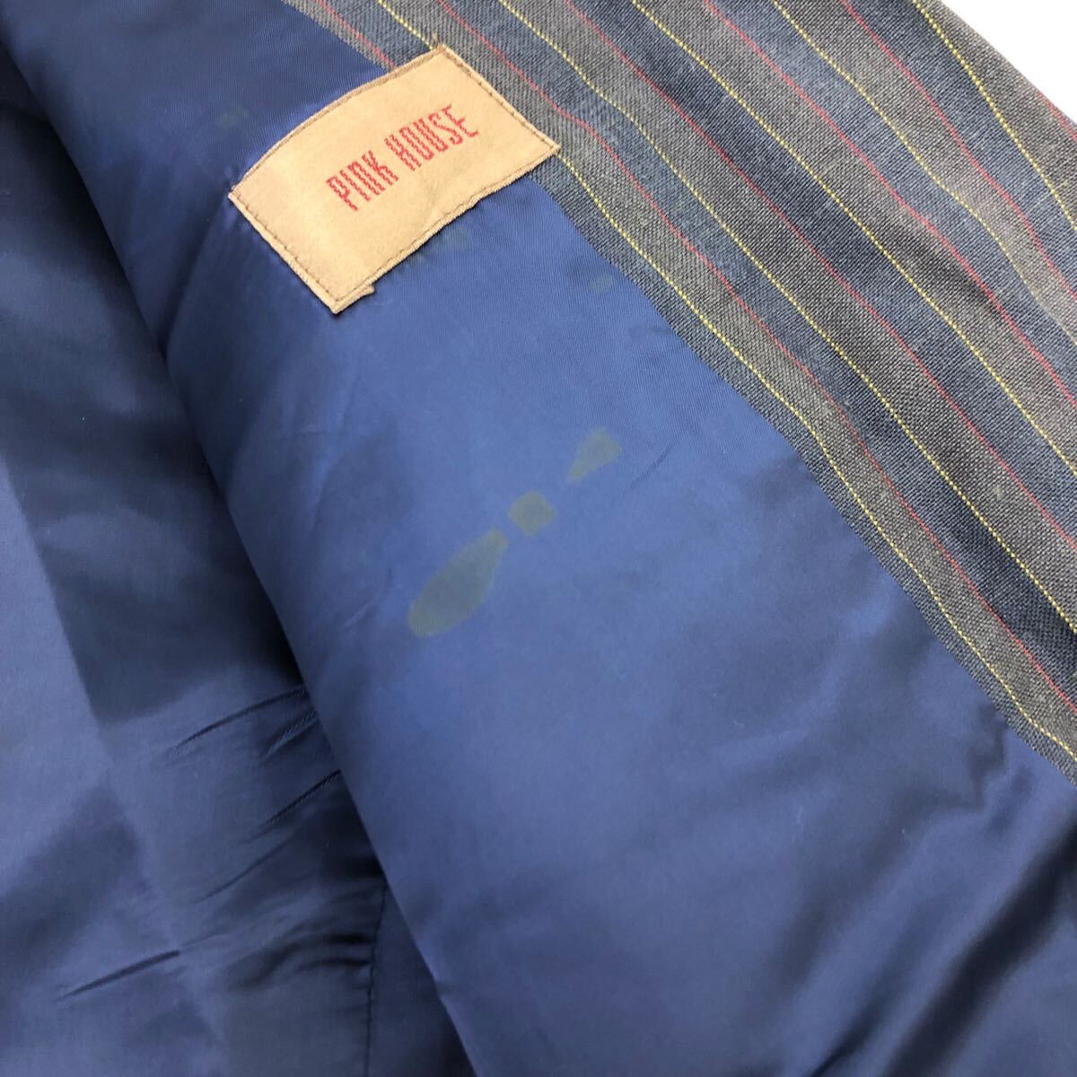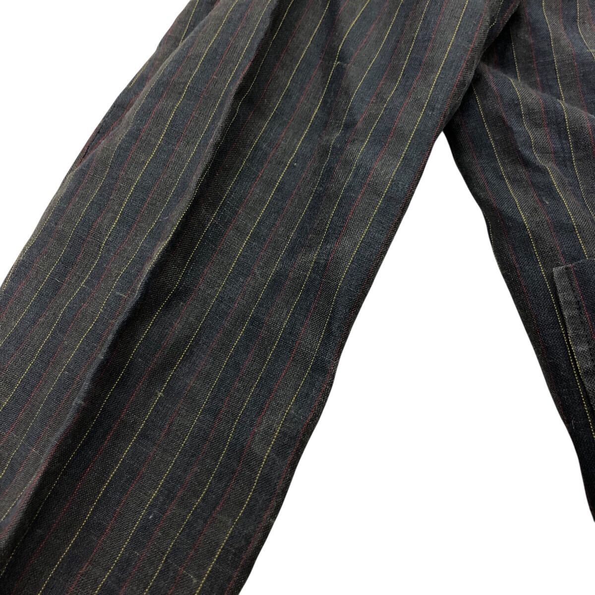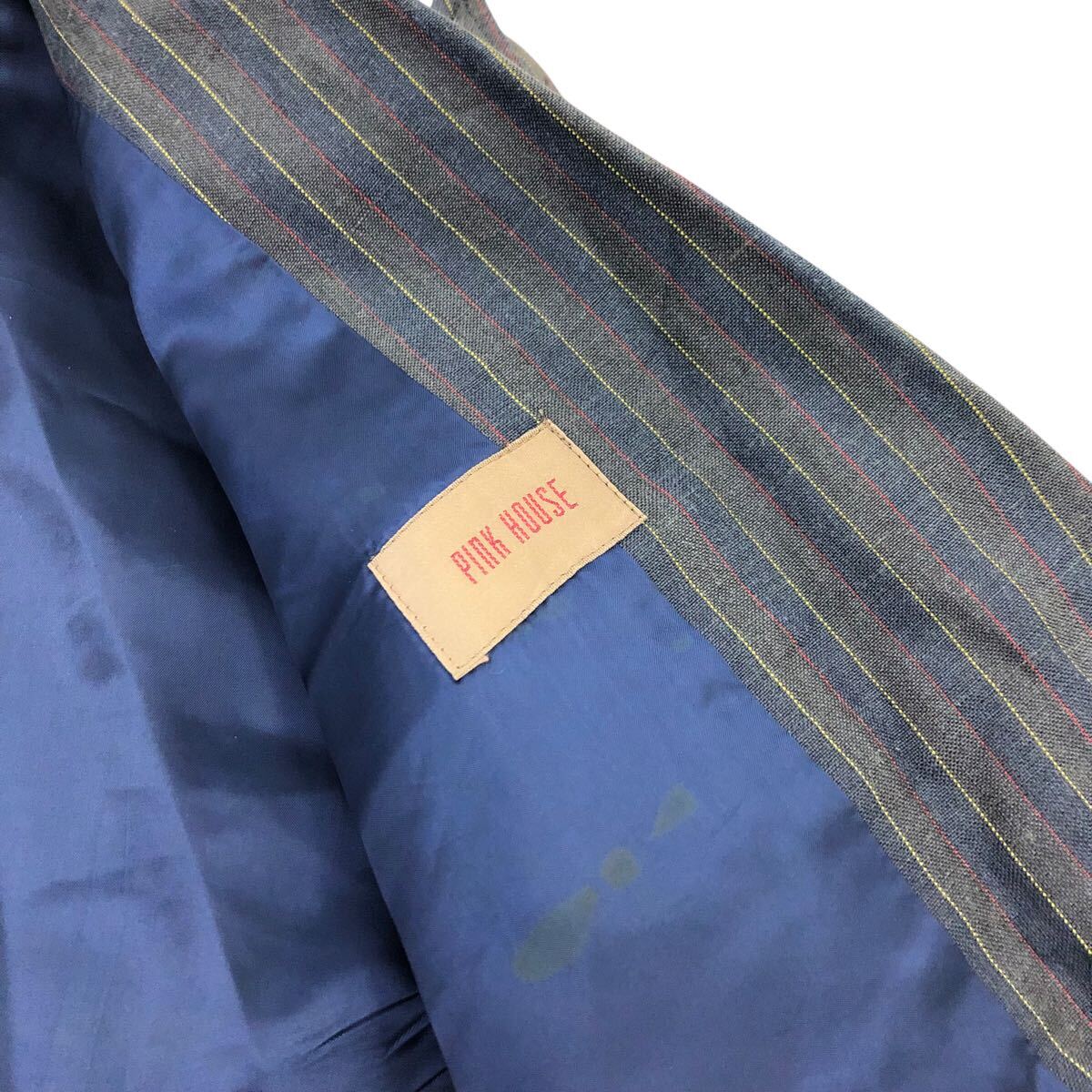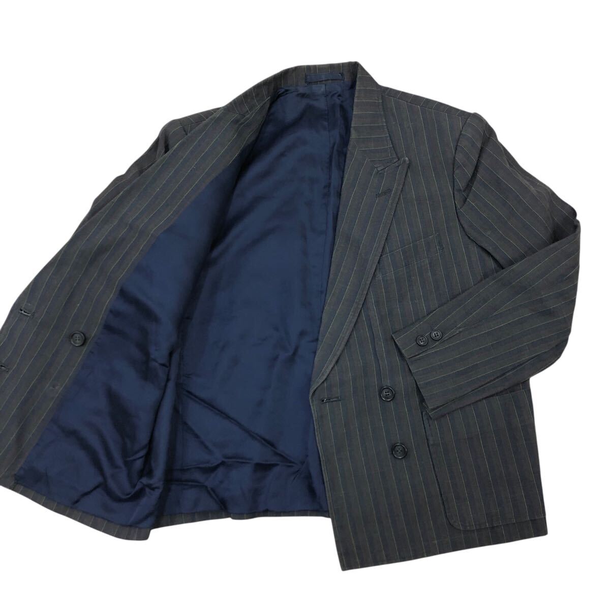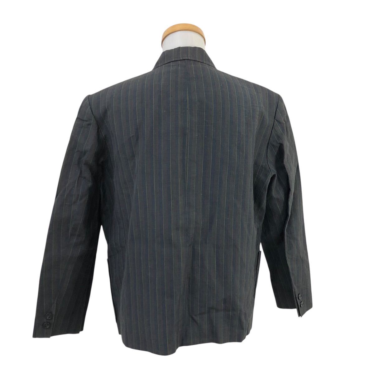 11Nm333-72 PINK HOUSE ピンクハウス リネン 麻 100% ストライプ 柄 ダブル テーラード ジャケット 上着 羽織り トップス グレー 実寸参考