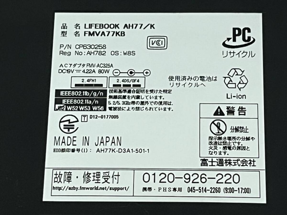 | 【中古動作品】富士通 AH77/K (FMVA77KB) 下半身 タッチパッド 外装 | |
