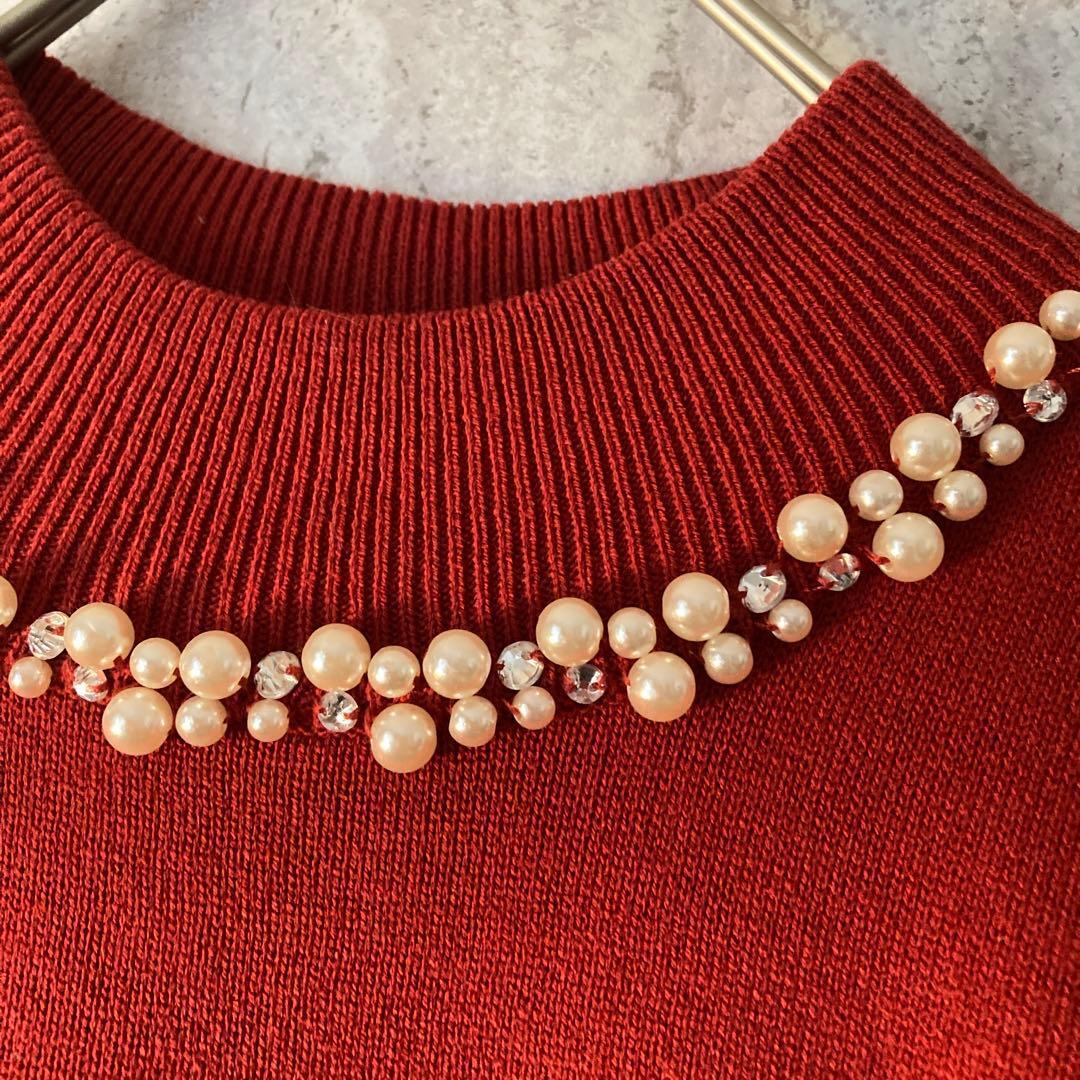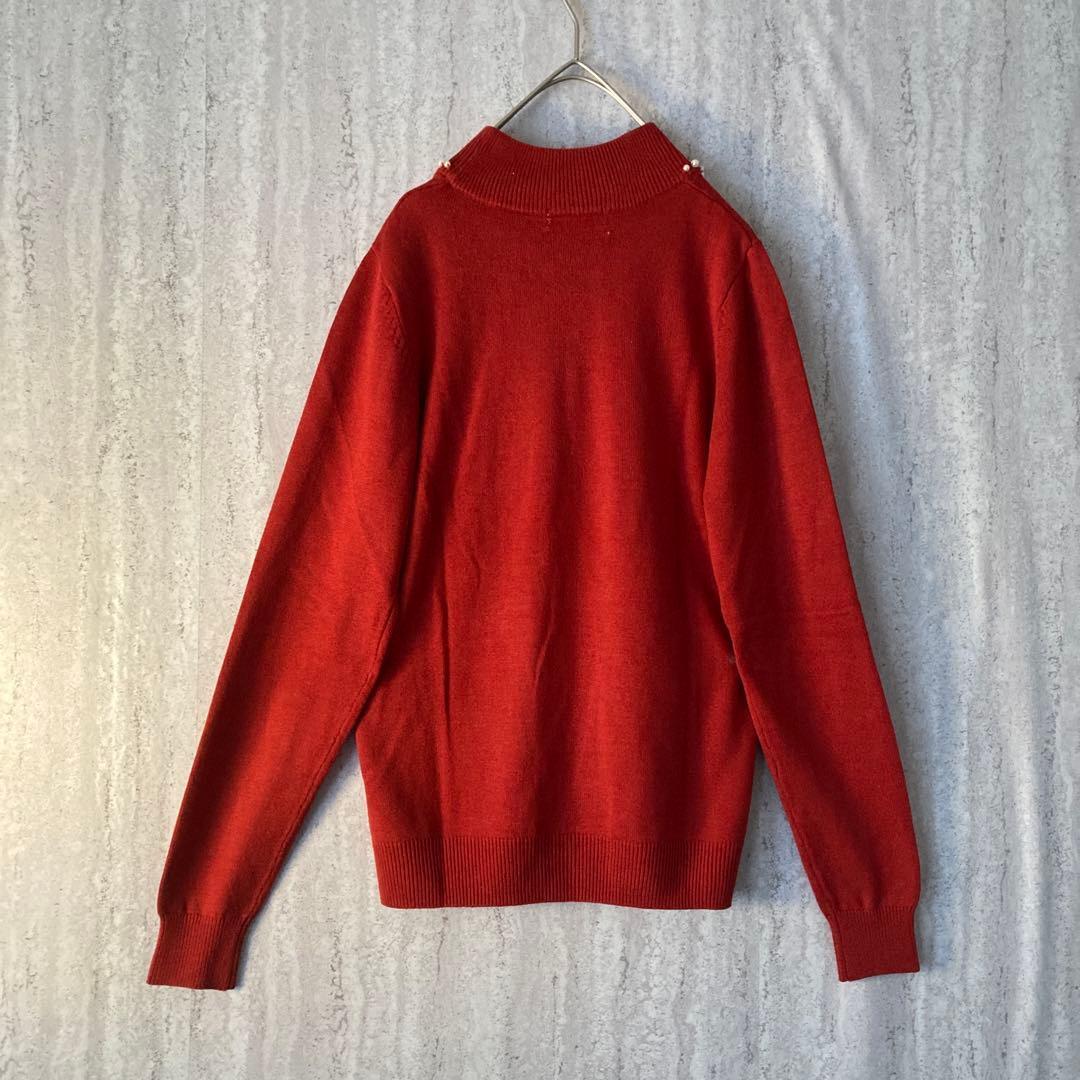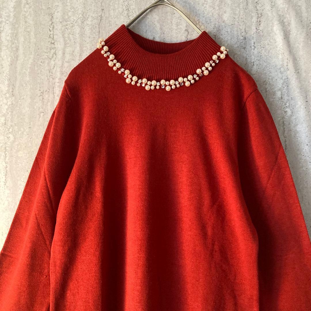 ネックレスのようにほどこされたパールがとっても可愛いハイネックニット。