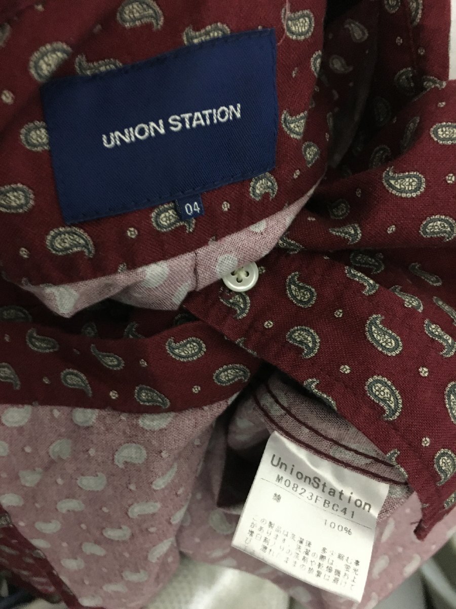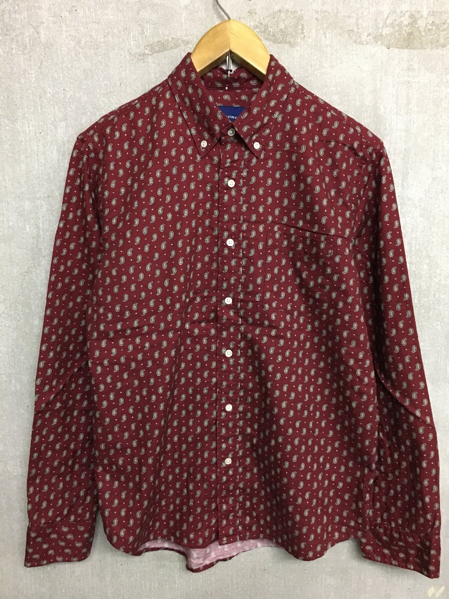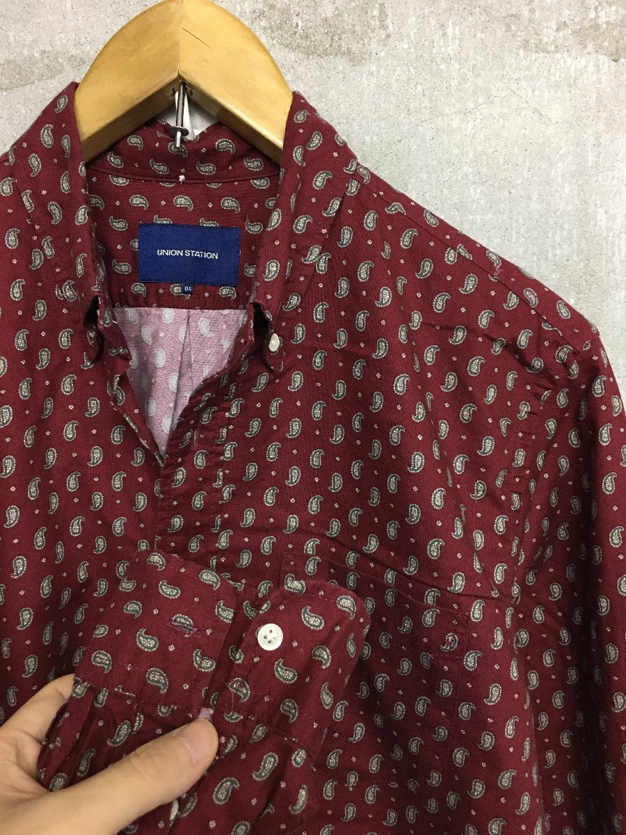 ◆メンズビギ UNION STATION ユニオンステーション ペイズリー柄 BD シャツ エンジ サイズ04 美