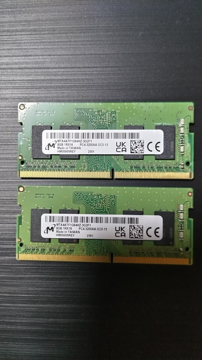 商品説明 【ノートPC用メモリ】 Micron DDR4 PC4-25600 16GB (8GB×2枚セット) 3200 の出品です