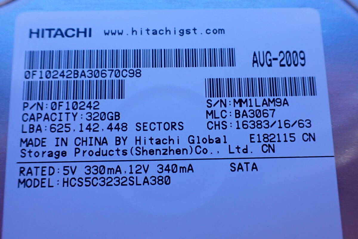 DD117#動作確認済み/ハードディスク HITACHI HCS5C3232SLA380 320GB(レコーダー BD-HDS32 から外し)