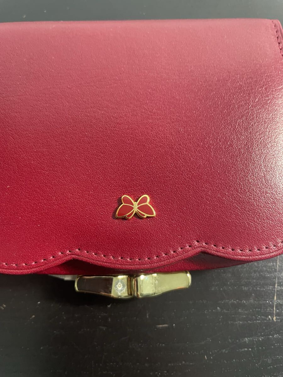 フロントにはブランドを象徴する蝶モチーフの金具があしらわれています。
