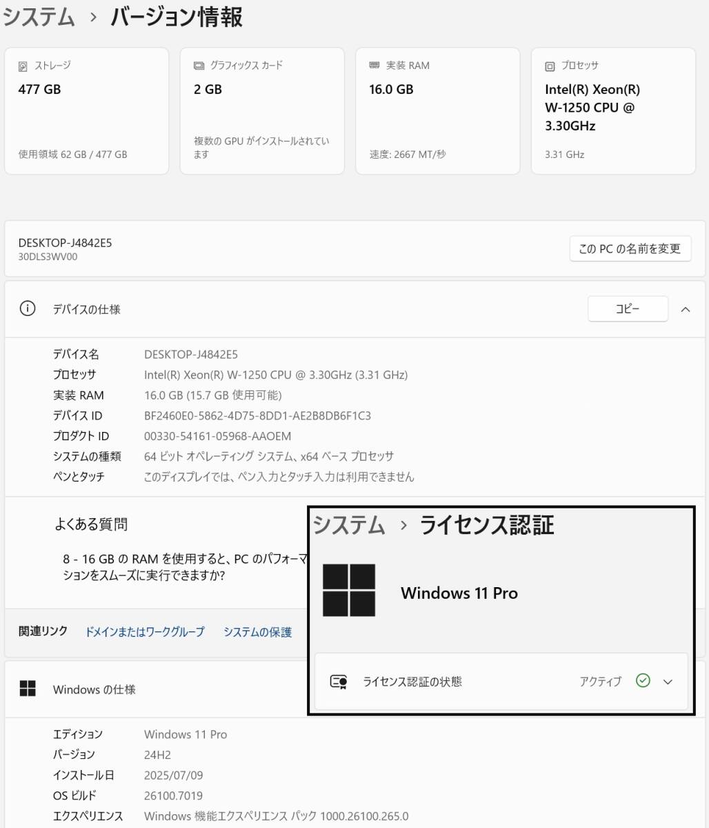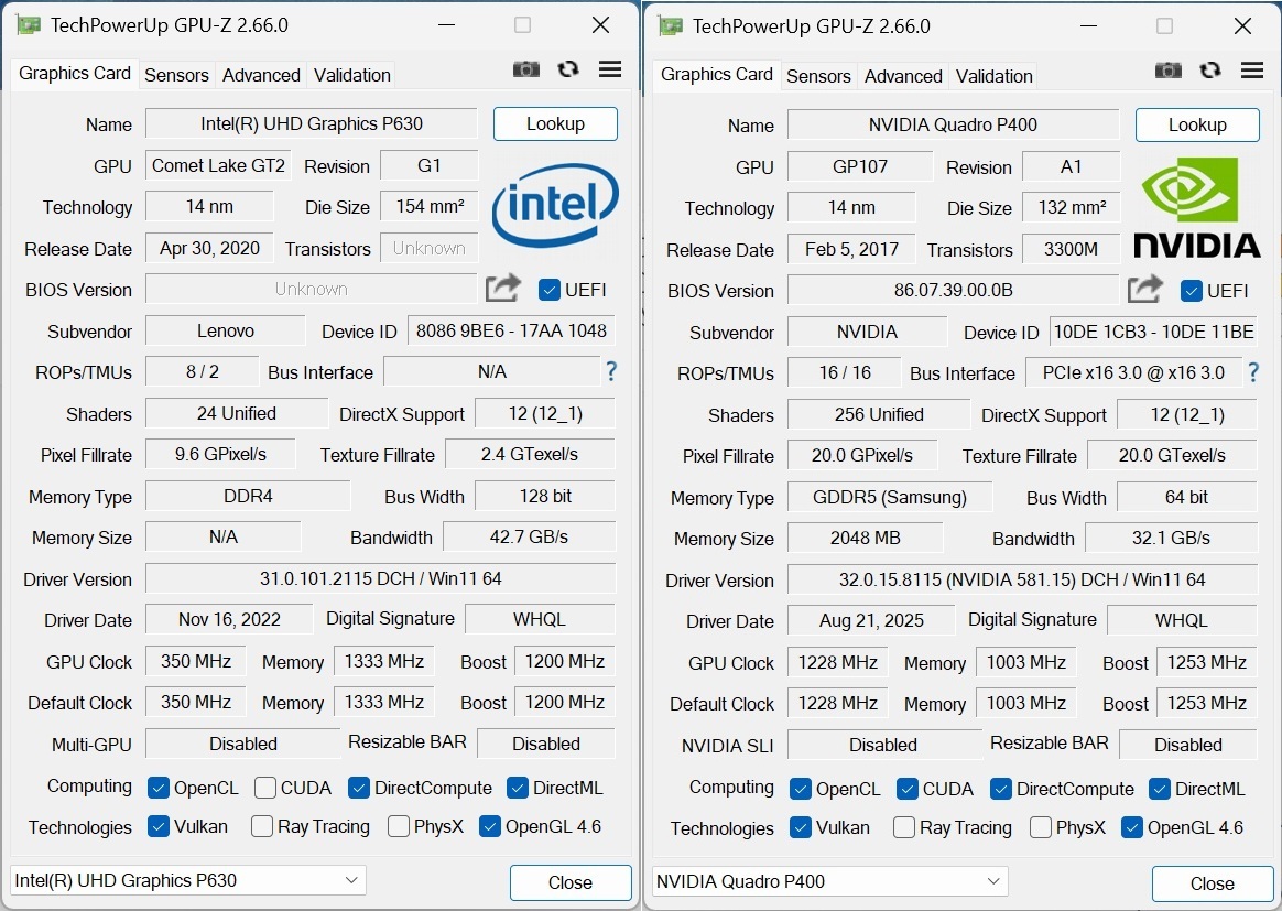 GPU - NVIDIA Quadro P400 + インテル UHD P630 ( 内蔵 )