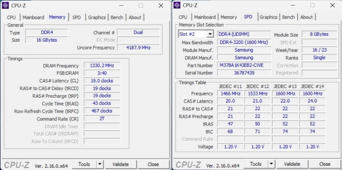 RAM - 16GB DDR4-2666 ( 8GB x 2 )
