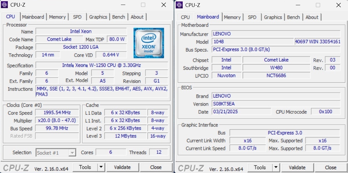 CPU - インテル Xeon W-1250 ( 6コア / 12スレッド / 3.3GHz )