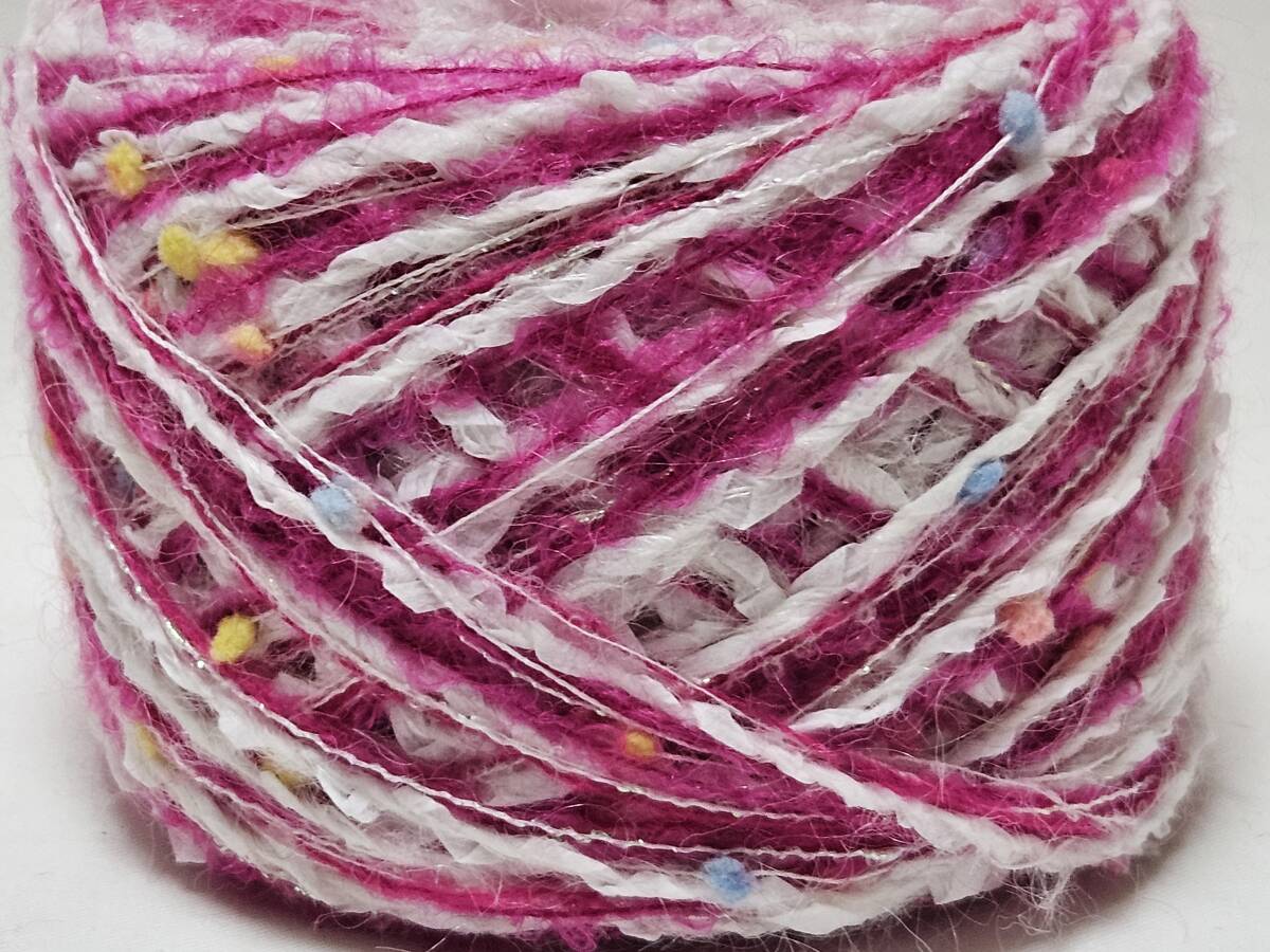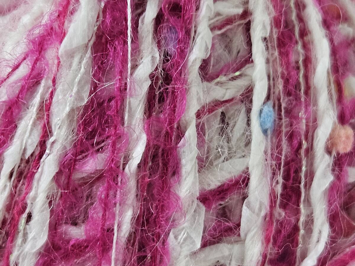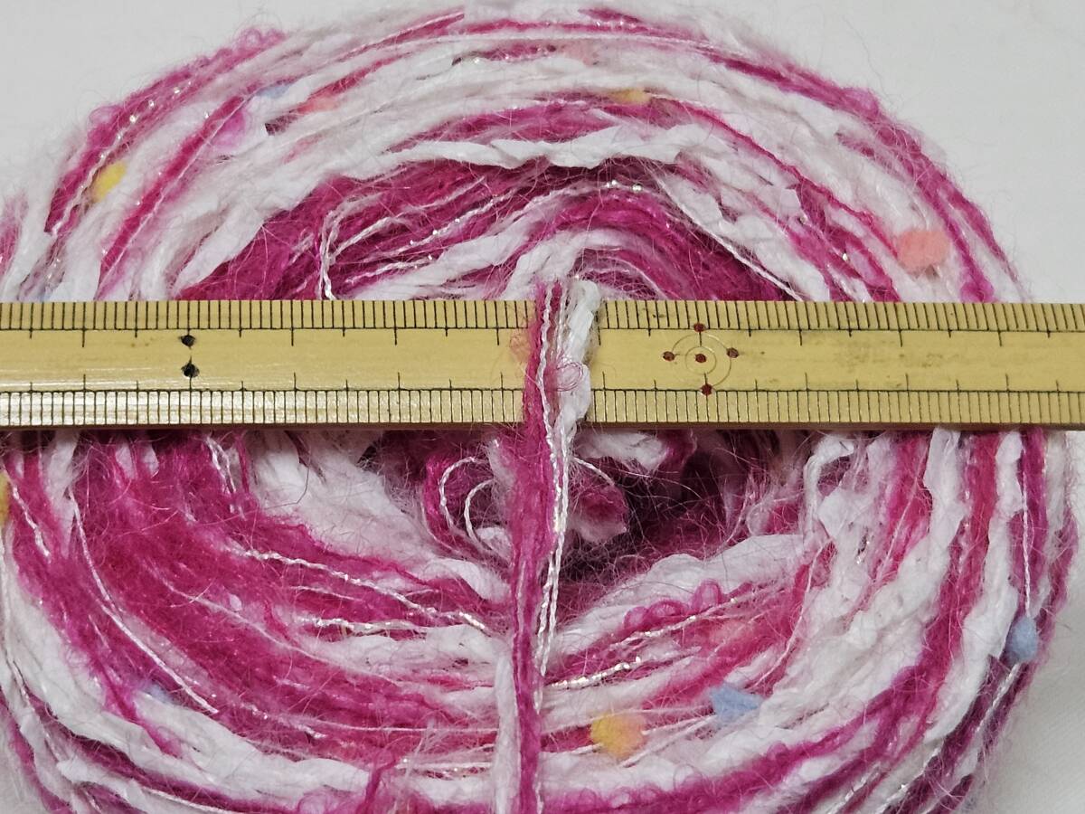 ナイロンスラリット×ウールリング、モヘア、ウール混変わり糸2、オーロラノットラメ、ボンボン