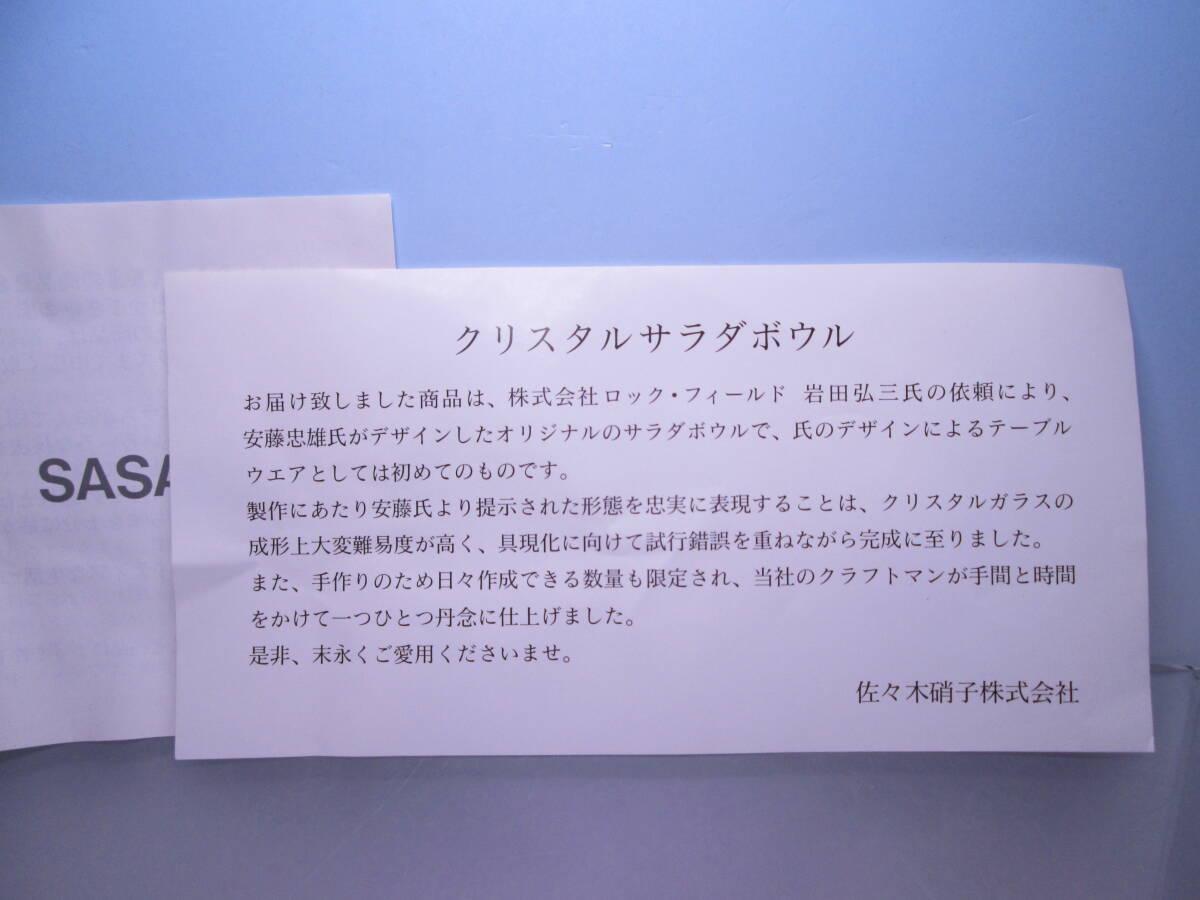 ☆佐々木硝子 建築家 安藤忠雄デザイン オリジナルクリスタルサラダボウル 23,3x32cm 共ケース付