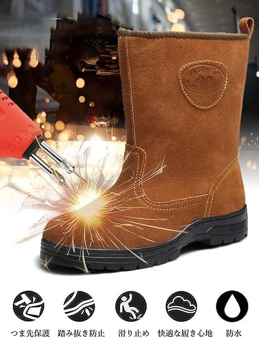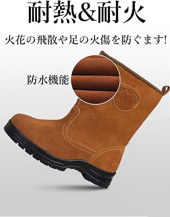 安全靴 作業ブーツ 安全長靴 耐油 溶接用 ハイカット 防水 半長靴 耐熱 耐火 鋼鉄先芯入り 耐滑 耐摩耗 サイズ:27cm
