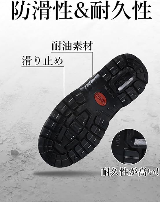 【つま先保護&釘踏み抜き防止】つま先部分には高品質な鋼鉄先芯入りで、作業場に刃物や重量物の衝撃から足を守ります。鋼製中底を搭載!足裏をしっかり保護してくれます!