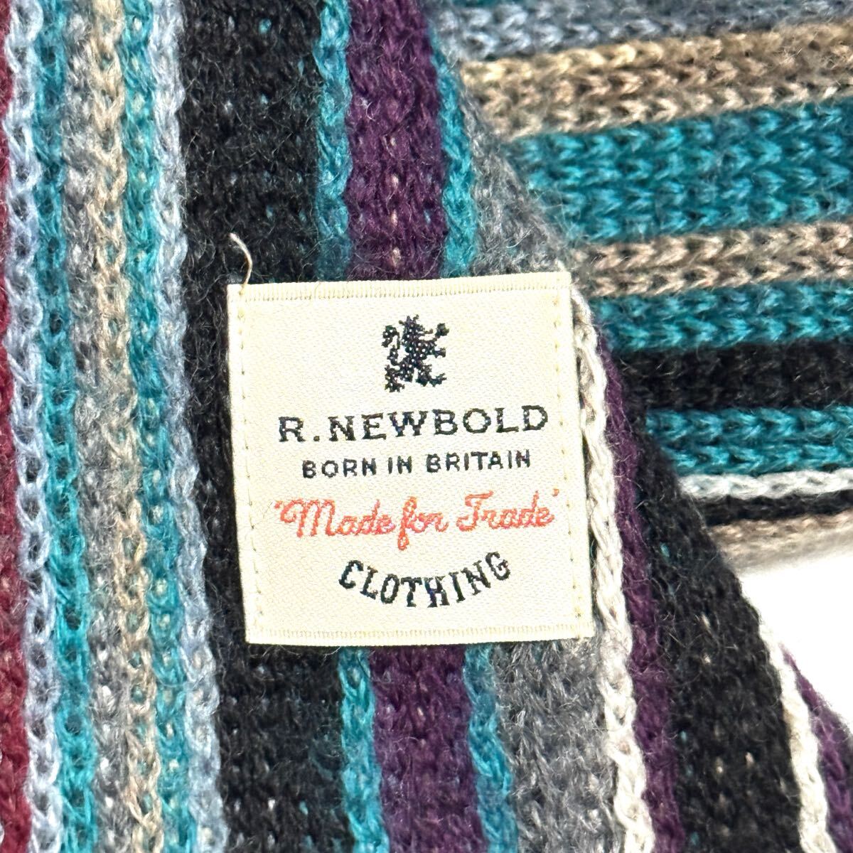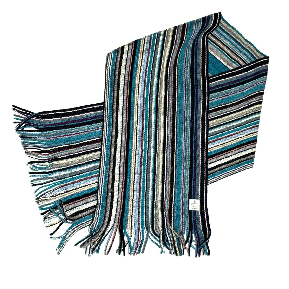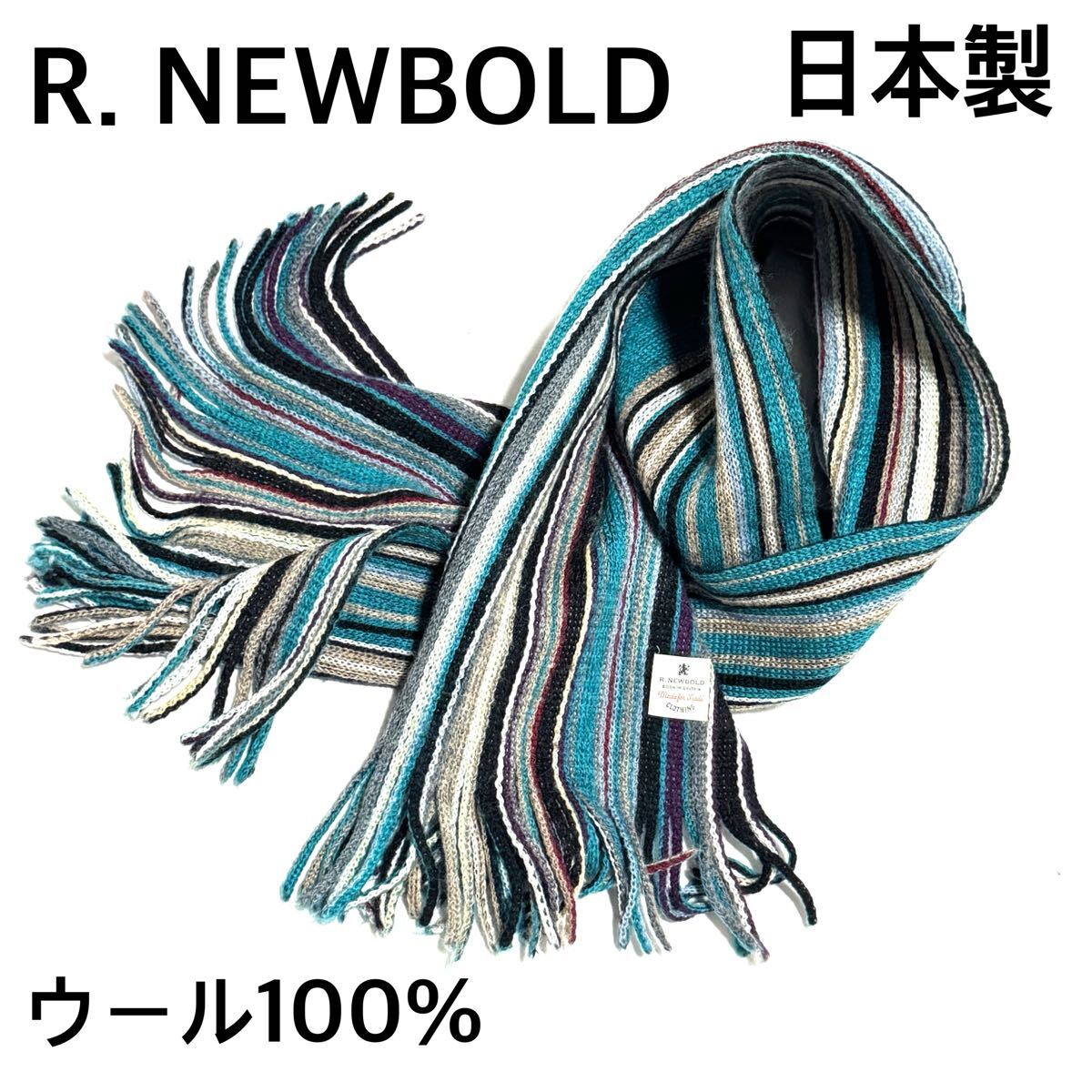 上質なウール100%素材を使用した、R.NEWBOLD(アールニューボールド)の日本製ストライプマフラーです。