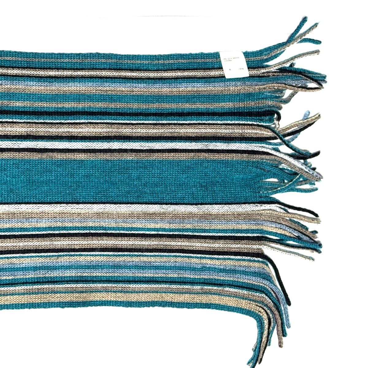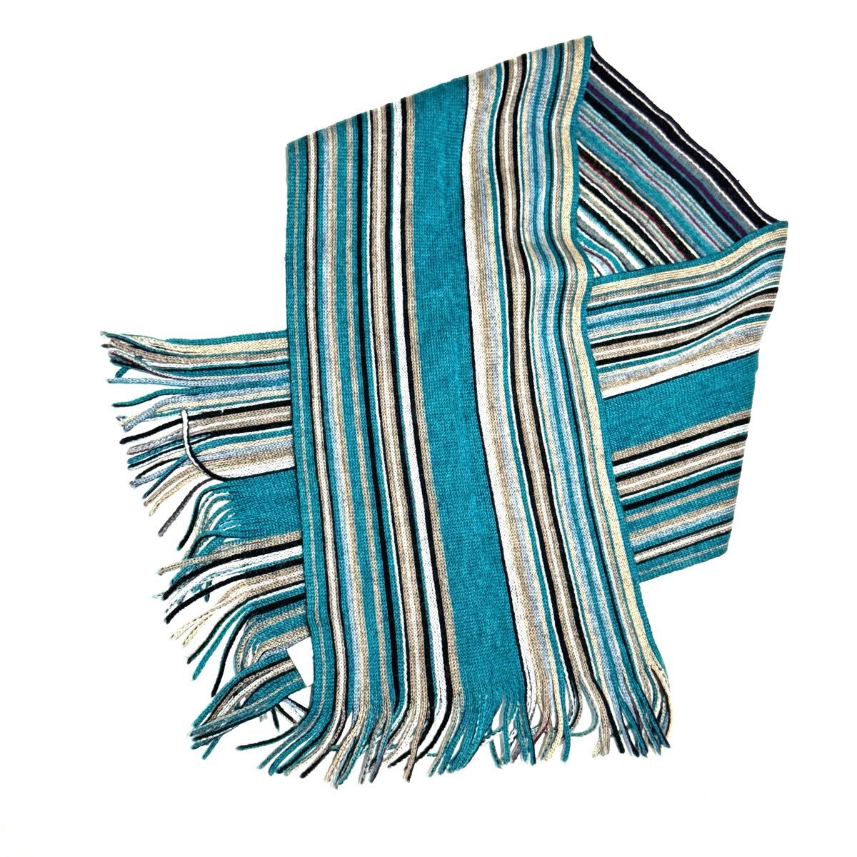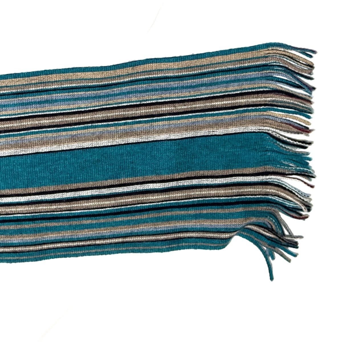 ターコイズ×グレー×ブラックの爽やかで個性的な配色が魅力。軽く柔らかな風合いで首元を上品に彩ります。