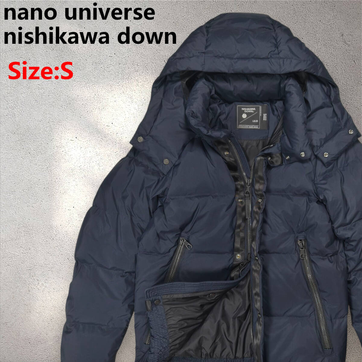 【極美品】ナノユニバース 西川ダウン ダウンジャケット LB.03 メンズ S 紺 ネイビー フード脱着可 近年モデル nano universe NISHIKAWA