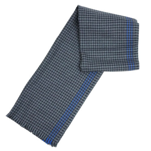 ●商品名: エルメネジルド・ゼニア メンズ チェック フリンジマフラー グレー/ダークグレー/ブルー