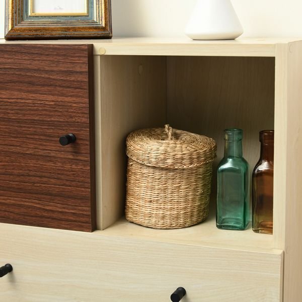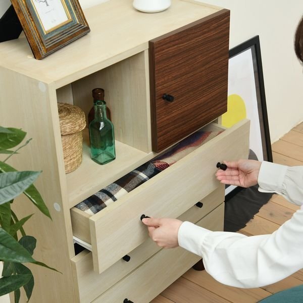 | 木目のあるナチュラル×ダークブラウンのツートーンで、ちょっぴりレトロな大人可愛いマルチチェスト。 3段の引き出しには小物や雑貨を収納したり、ハンカチなどの衣類を収納しても◎ 引き出しの上部にはオープン、扉付きの収納もご用意。 「見せる収納」「隠す収納」どちらも使用できるデザインです。 同じシリーズ商品と積み重ねたり横に並べたり、自分流のスタイリングが可能。 自由に組み合わせることで、お部屋に合わせたレイアウトとオリジナル収納を実現できます。 |