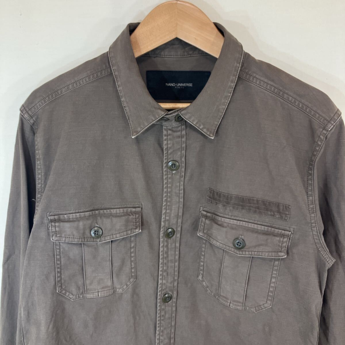 nano universe ナノユニバース men's メンズ Wポケット ミリタリー シャツ 長袖 ワークシャツ 無地