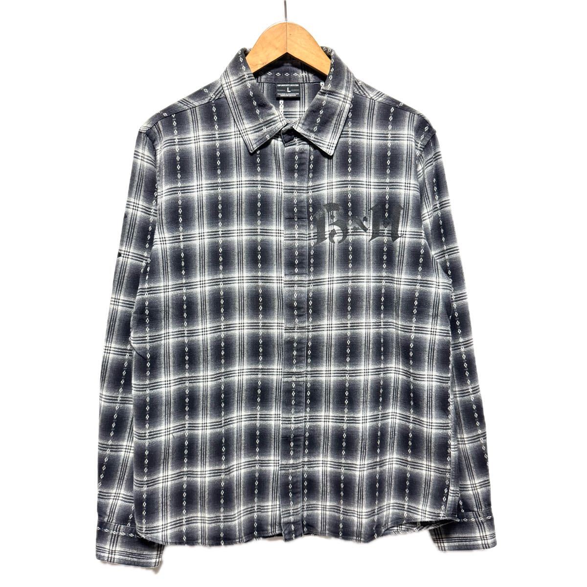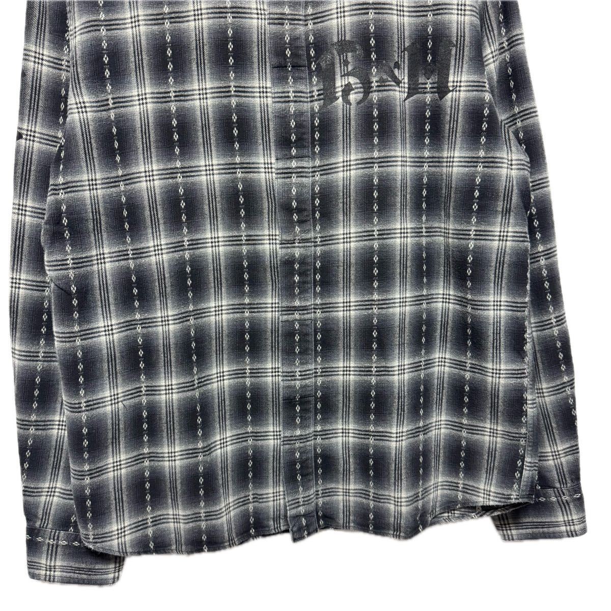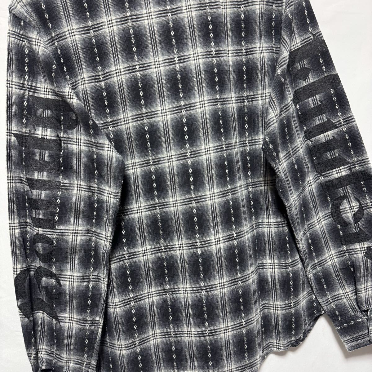 【商品名】ロゴ プリント/オンブレ チェックシャツ/シャツ 長袖シャツ