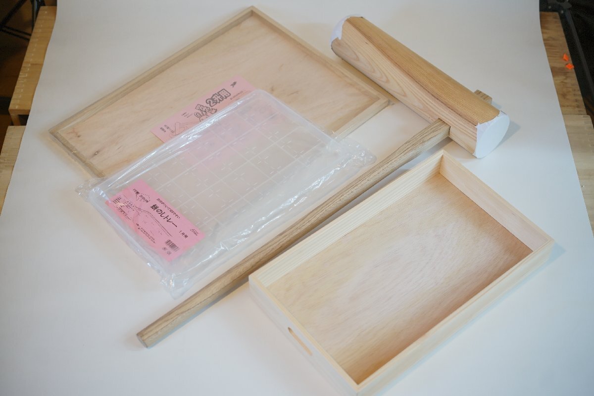 【送料無料】【アウトレット】ワケあり格安! ケヤキもちつき杵 キネM +もち箱 + 四方枠のし板2升用 + 餅のしトレイ1升用 餅つき y700