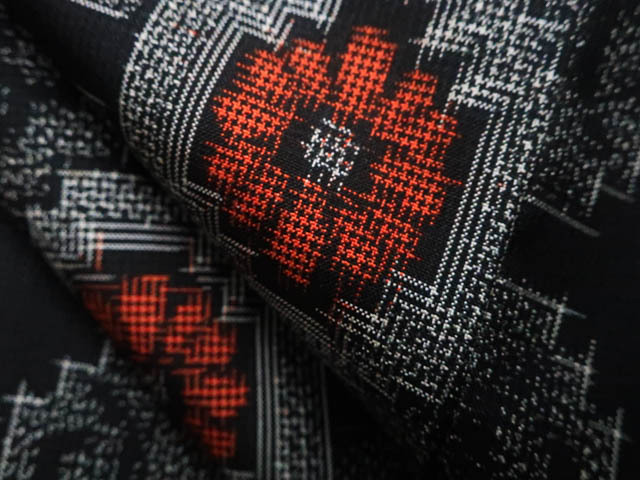 リサイクル商品のため、所々汚れがございますが着用可能なお品です。 地色は 黒です。 1枚目の画像が近いお色かと思われます。 素材は正絹です。 |