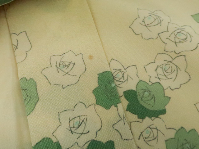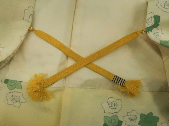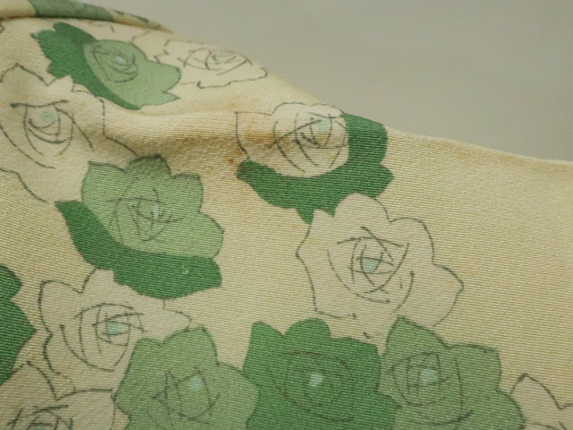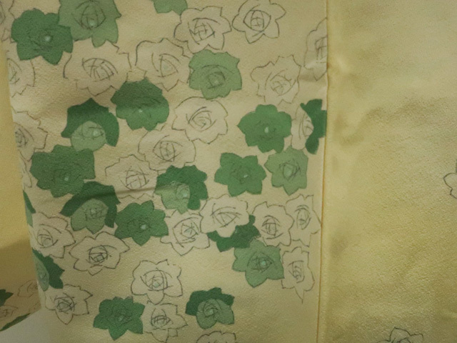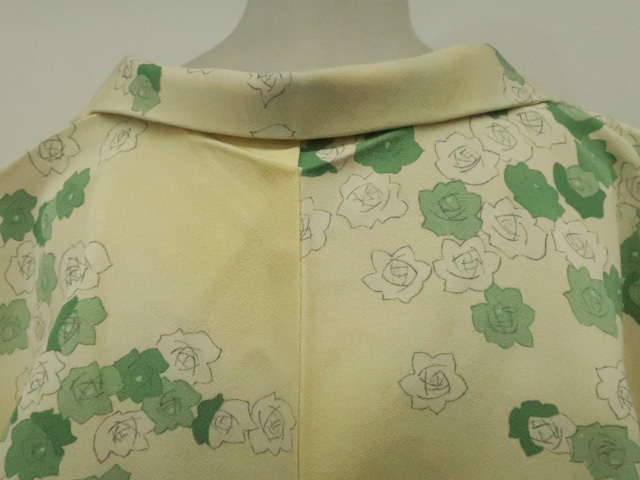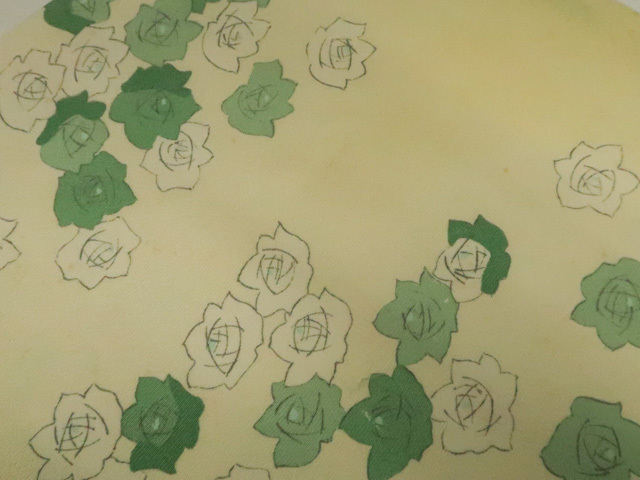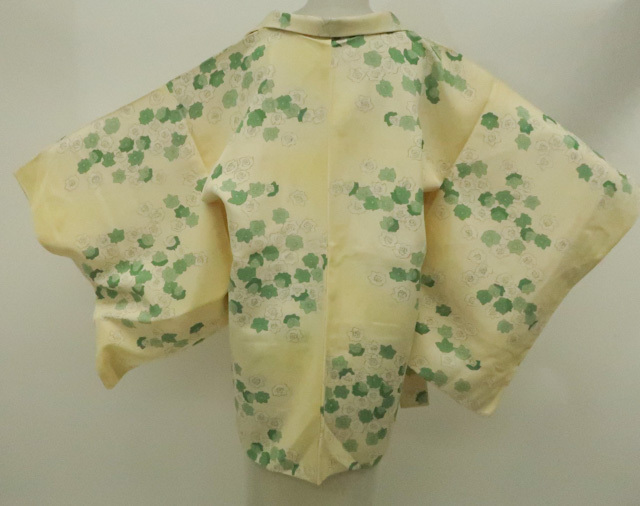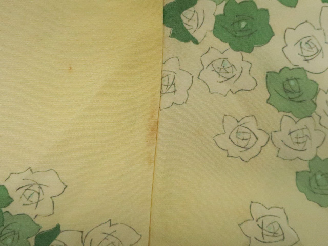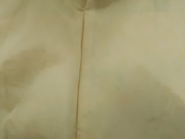 リサイクル商品のため、両袖など所々しみ汚れがございます。 衿と羽裏に汚れがございますが着用可能なお品です。 地色は黄です。 1枚目の画像が近いお色かと思われます。 素材は正絹です。 |