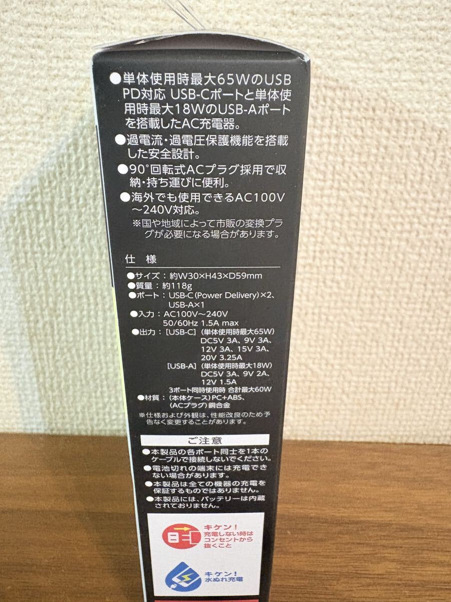 ●USB-Cポート単体使用時最大65WのUSBPD対応