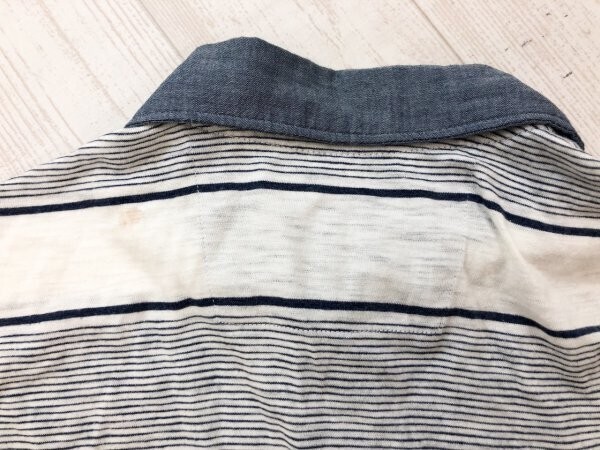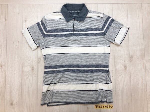 ANA REPUBLIC バナナリパブリック メンズ マルチボーダー 薄手 半袖ポロシャツ S 紺白 です。