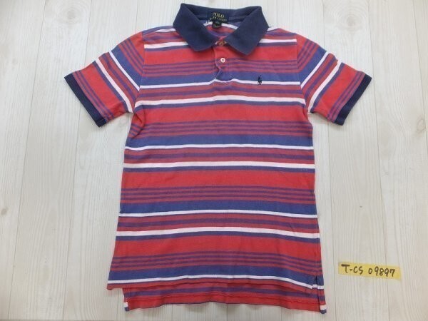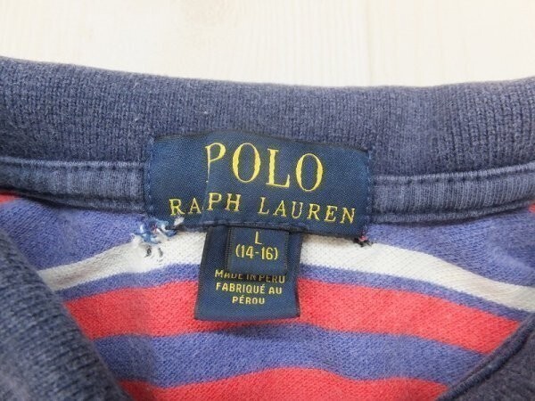 POLO RALPH LAUREN ラルフローレン キッズ ワンポイント刺繍 マルチボーダー 半袖ポロシャツ L(14-16) 赤紺白 です。
