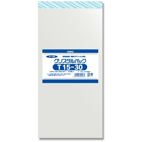 ヘイコー 透明 OPP袋 クリスタルパック テープ付 15×30cm 100枚 T15-30