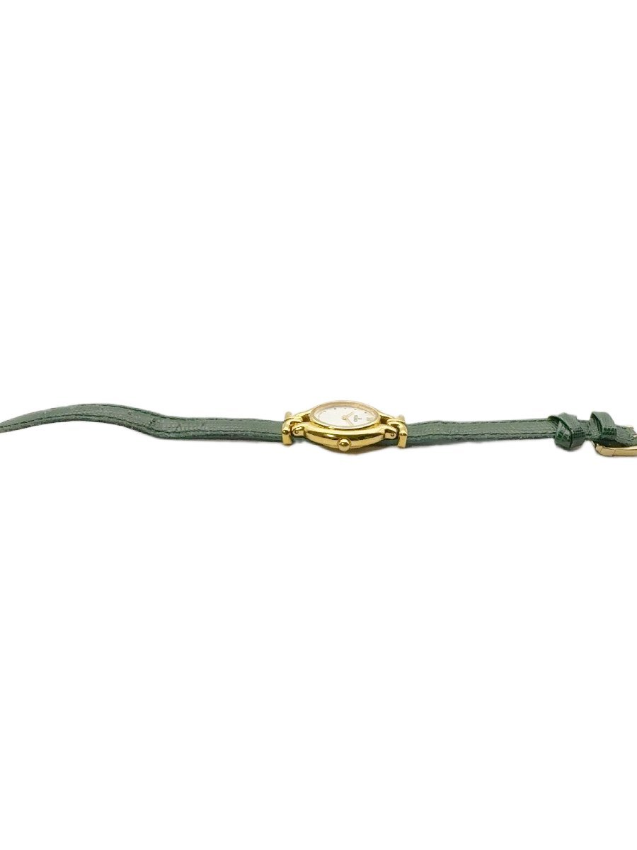 ◆商品説明 | FENDI(フェンディ)のレディース腕時計「カメレオン(Chameleon)」です。 型番は「640L」で、スイス製(SWISS MADE)モデルです。 このモデルの最大の特徴は、ベルトを着せ替え可能な「チェンジベルトタイプ」で、ファッションや気分に合わせてベルトを交換して楽しめる仕様です。 ◆仕様 ・ブランド FENDI(フェンディ) ・モデル名 カメレオン(Chameleon) ・型番 640L ・ムーブメント クォーツ(電池式) ・製造国 SWISS MADE(スイス製) ・文字盤カラー ホワイト ・ケース素材 ステンレススチール(GP/金メッキ) ・ベルト 交換可能なレザーベルトタイプ ◆サイズ ・全長:約21.5cm ・ケースサイズ:縦 約3.7cm × 横 約2.7cm(リューズ含む) ・厚み:約0.6cm ・腕周り:約11~17cm ◆状態 ・ケース ガラス部分:傷・汚れなしで綺麗です。 ゴールド部分:擦れ、小傷あり。 ・背面 傷・汚れなしで綺麗です。 ・サイド やや擦れ、小傷あり。 ・ベルト 使用によるやや劣化、やや曲がりあり。 針が動作するのを確認しています。 【ランク】 Bランク ・お支払い方法 |
