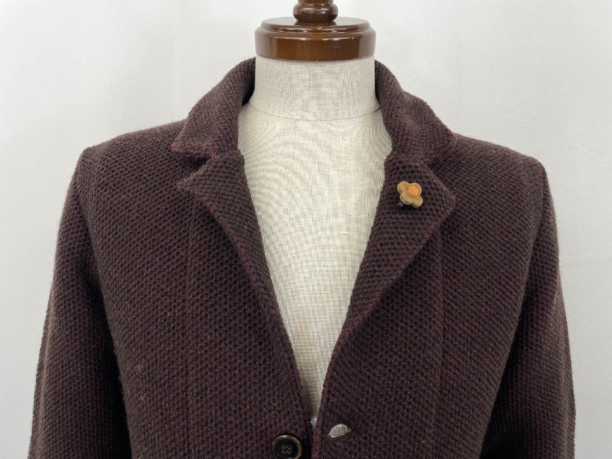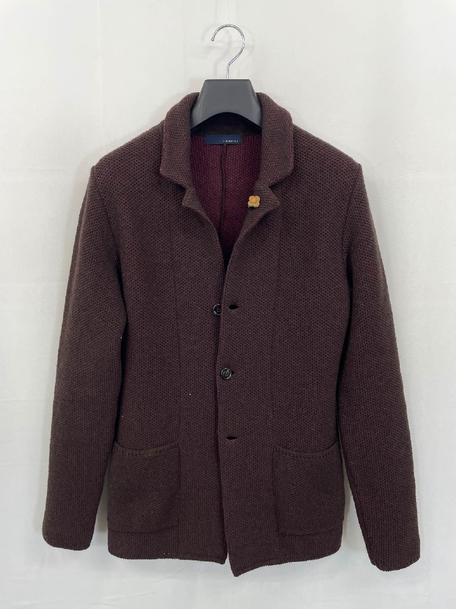 超美品【ラルディーニ LARDINI】JFLJM03 ブートニエール 3ボタン ウールニットジャケット(メンズ)XXS ブラウン×ボルドー系 伊製◇17MN6406