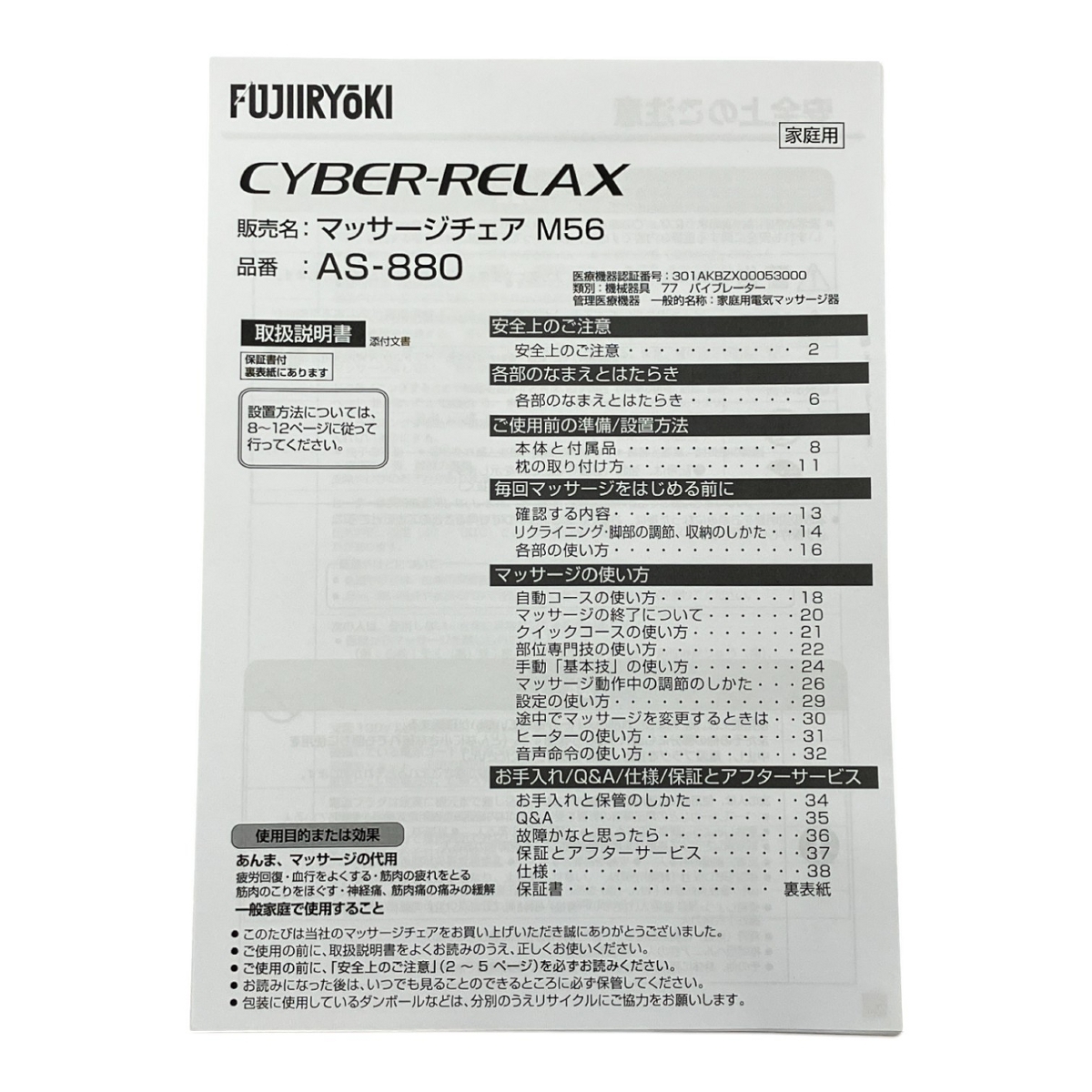 | フジ医療 マッサージチェア M56 AS-880 サイバーリラックス 家庭用電気マッサージ器 2020年製 家電 中古 楽 M9940598 |