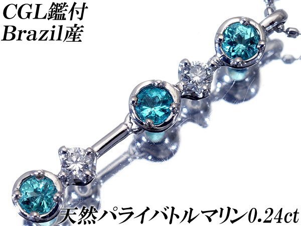 【ジュエリー極】CGL鑑 ブラジル産 極上天然パライバトルマリン0.24ct&ダイヤ0.09ct 超高級Pt900&Pt850ネックレス h7976rl【送料無料】