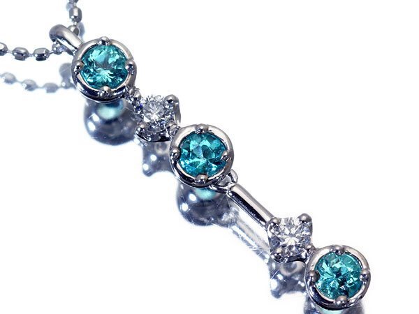 超希少宝石のブラジル産の極上天然パライバトルマリン総計0.24ct(CuO:1.27%)&ダイヤモンド総計0.09ctを素敵に宝飾した、超高級Pt900&Pt850ペンダントネックレスを激安価格で特別大放出させて頂きます!