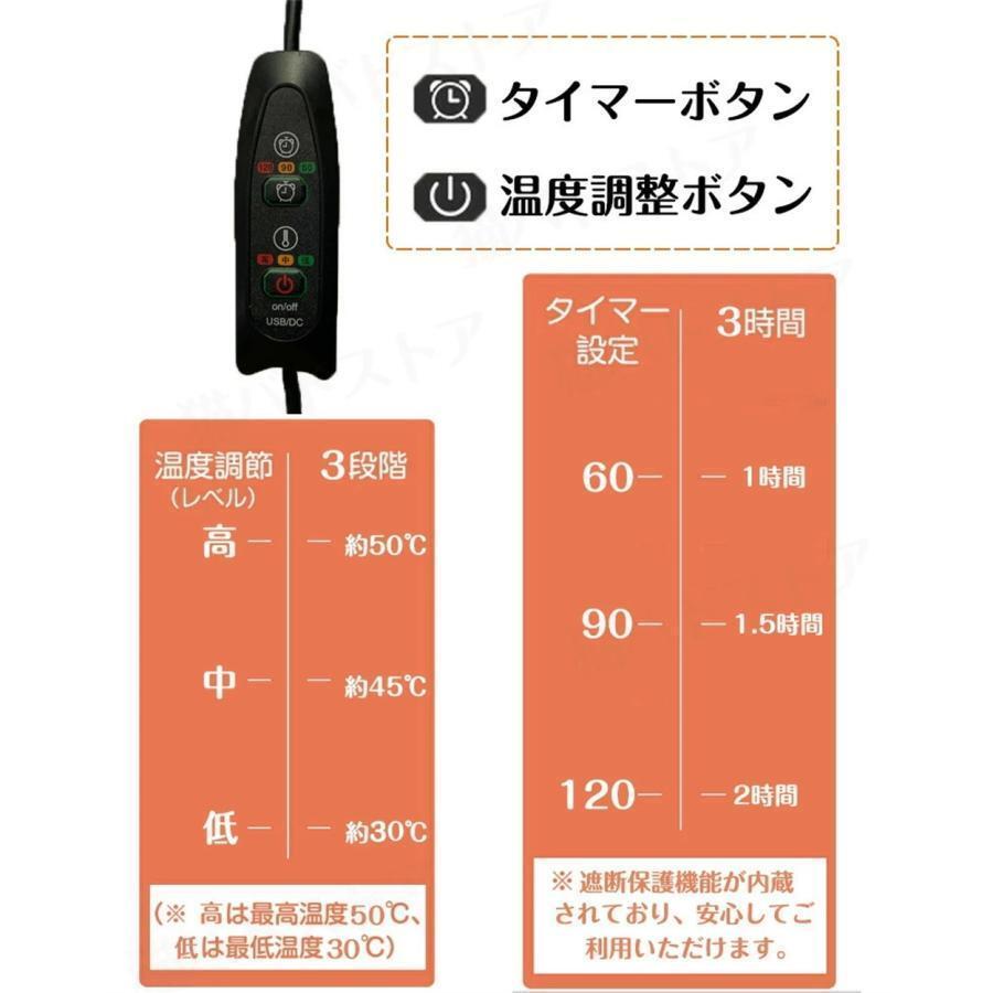 【タイマー機能USB機能】タイミング機能付き、60、90、120分設定可能です。5V US給電式、どこでも利用できます。また、加熱芯を外して足温器を丸洗いできます。